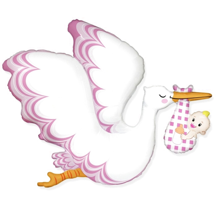 Фольгированный шар в форме аиста с девочкой. Для подарка новорожденной.