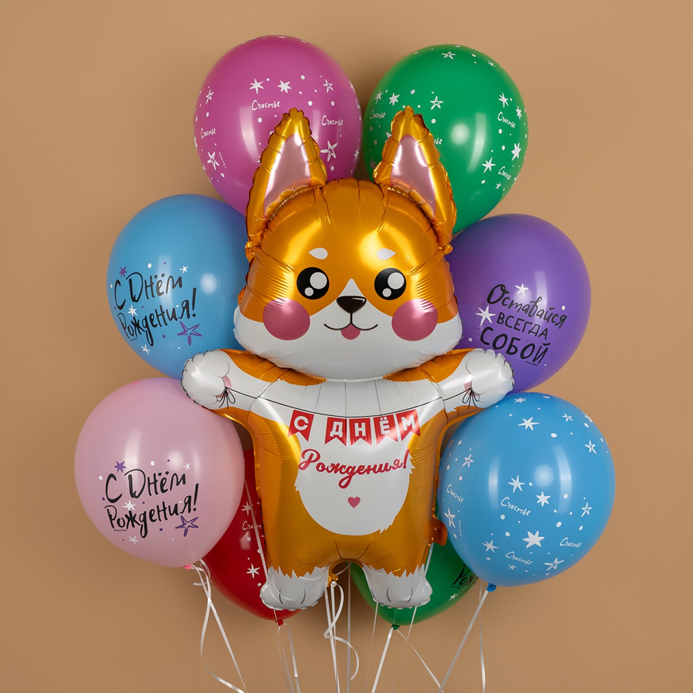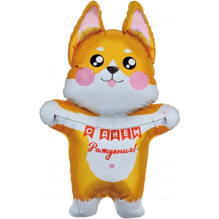 Шар фигура Корги С днем рождения . Приятно украсит букет или композицию с цветами. Дарите радость и хорошее настроение своим любимым.