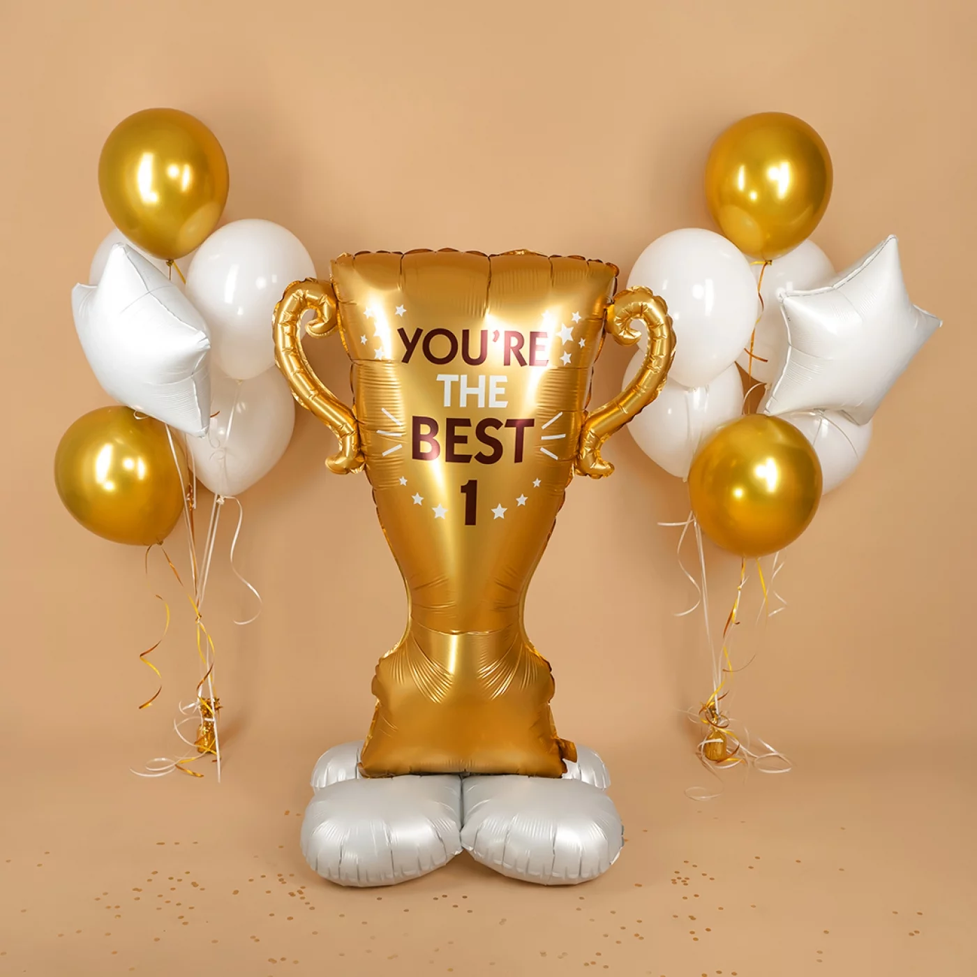 Шар Фигура на подставке Кубок Ты Лучший Золото, прекрасно дополнит ваш букет и создаст праздничное настроение.