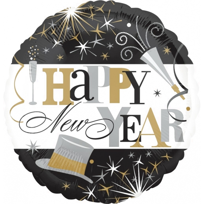 Шар Круг Happy New Year Черный с Белым, прекрасно дополнит ваш букет и создаст праздничное настроение.