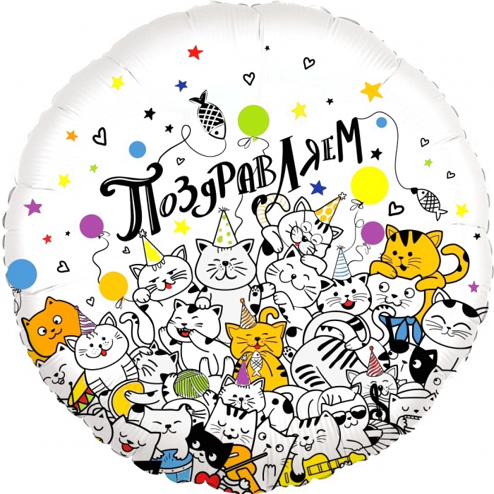 Шар фольгированный круглый "Поздравляем" котики создаст праздничное настроение.