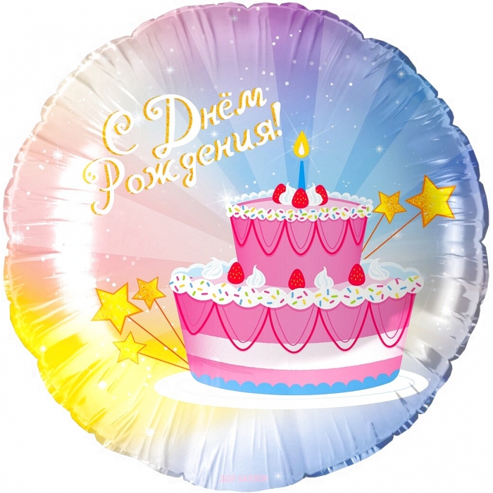 Шар фольгированный круг С Днем рождения (тортик) создаст праздничное настроение.