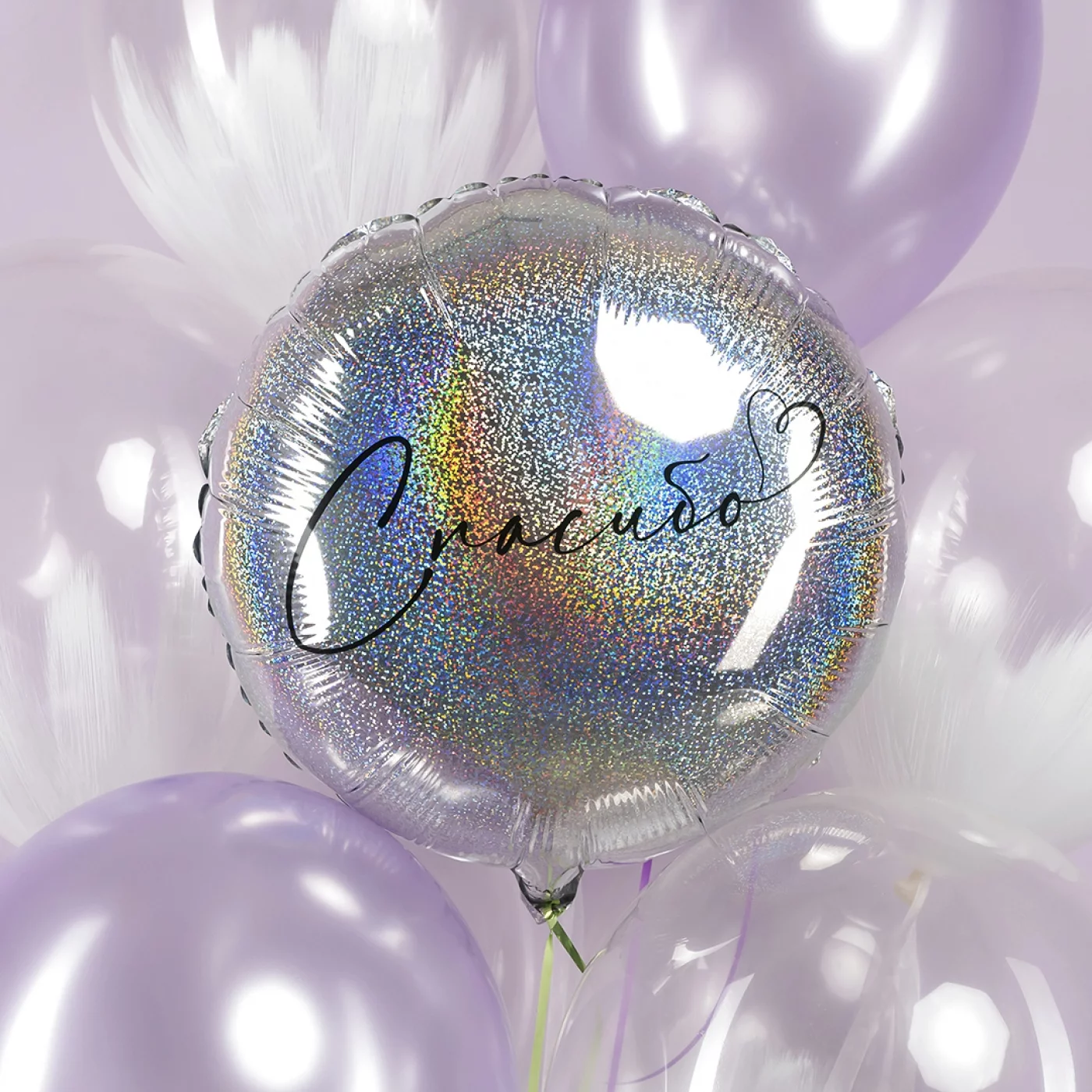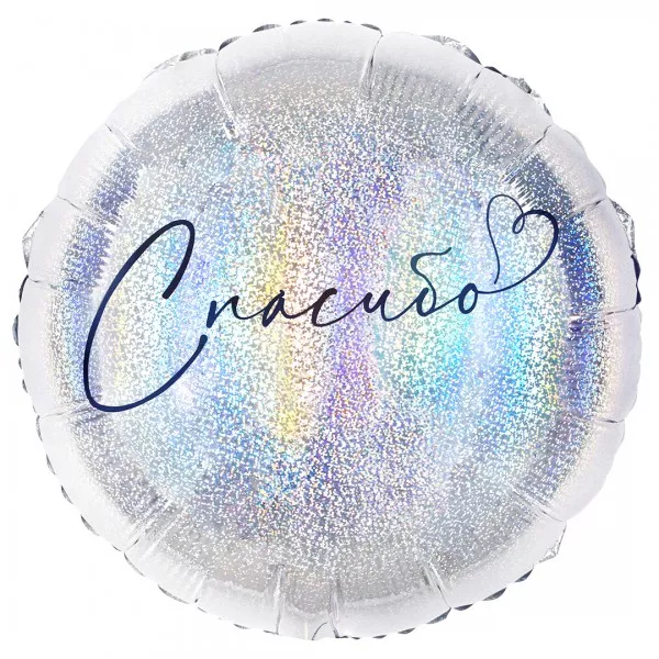 Шар фольгированный круглый Спасибо серебряная голография прекрасно дополнит ваш букет и создаст праздничное настроение.