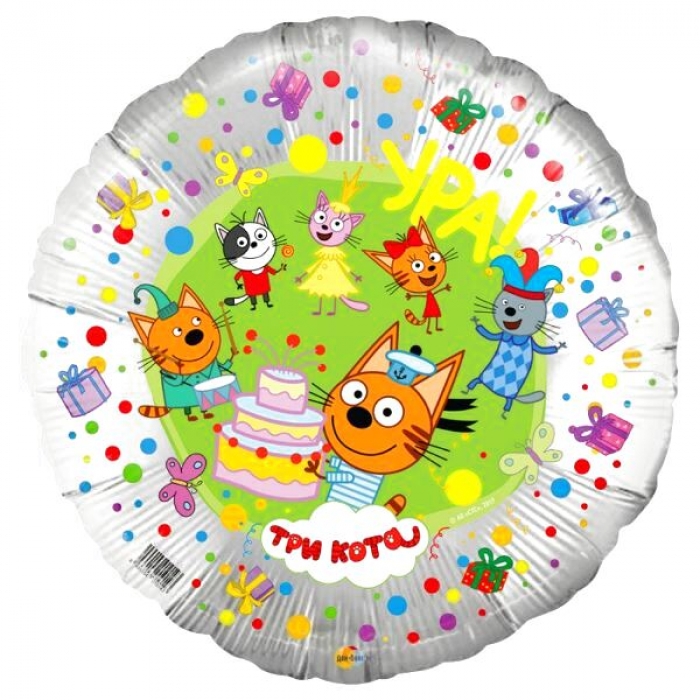 Шар круг Три кота С днем рождения (серебро), создаст праздничное настроение.