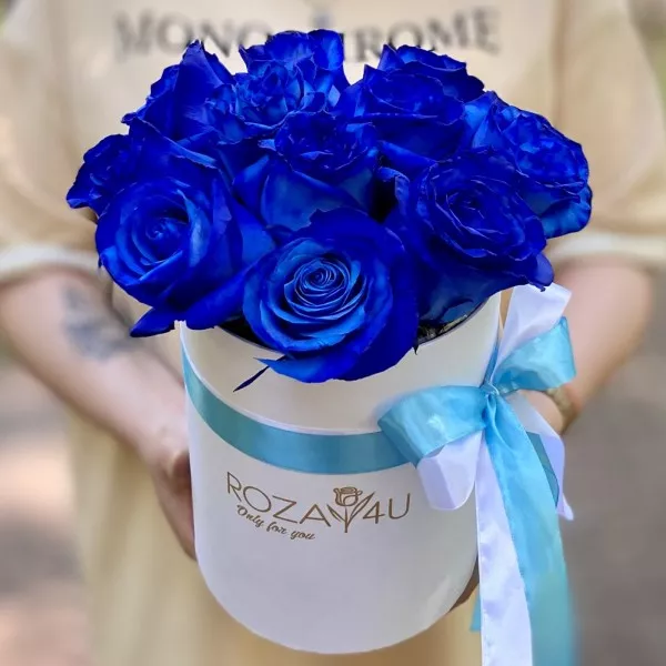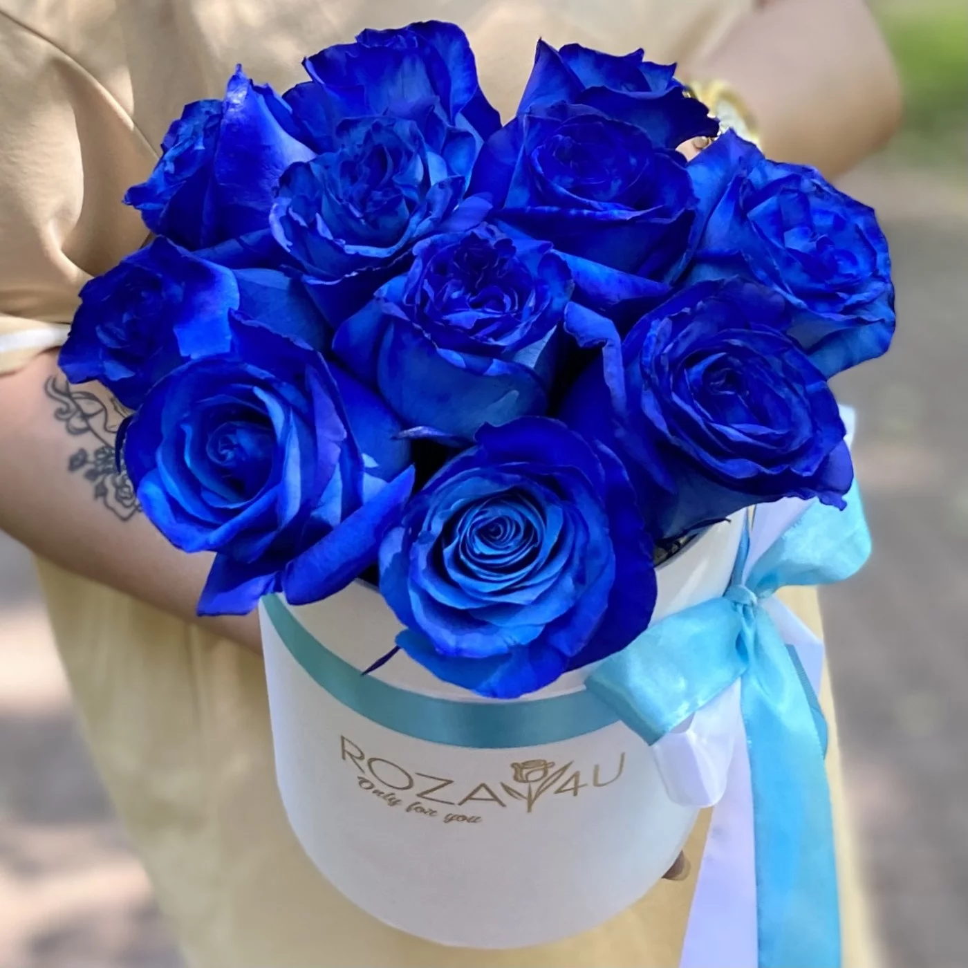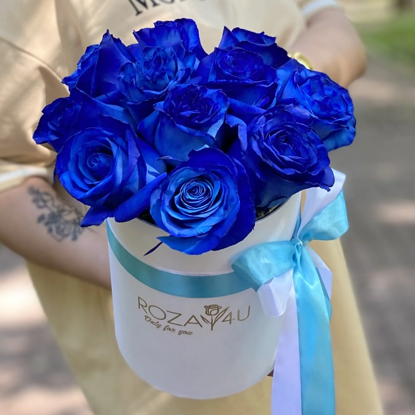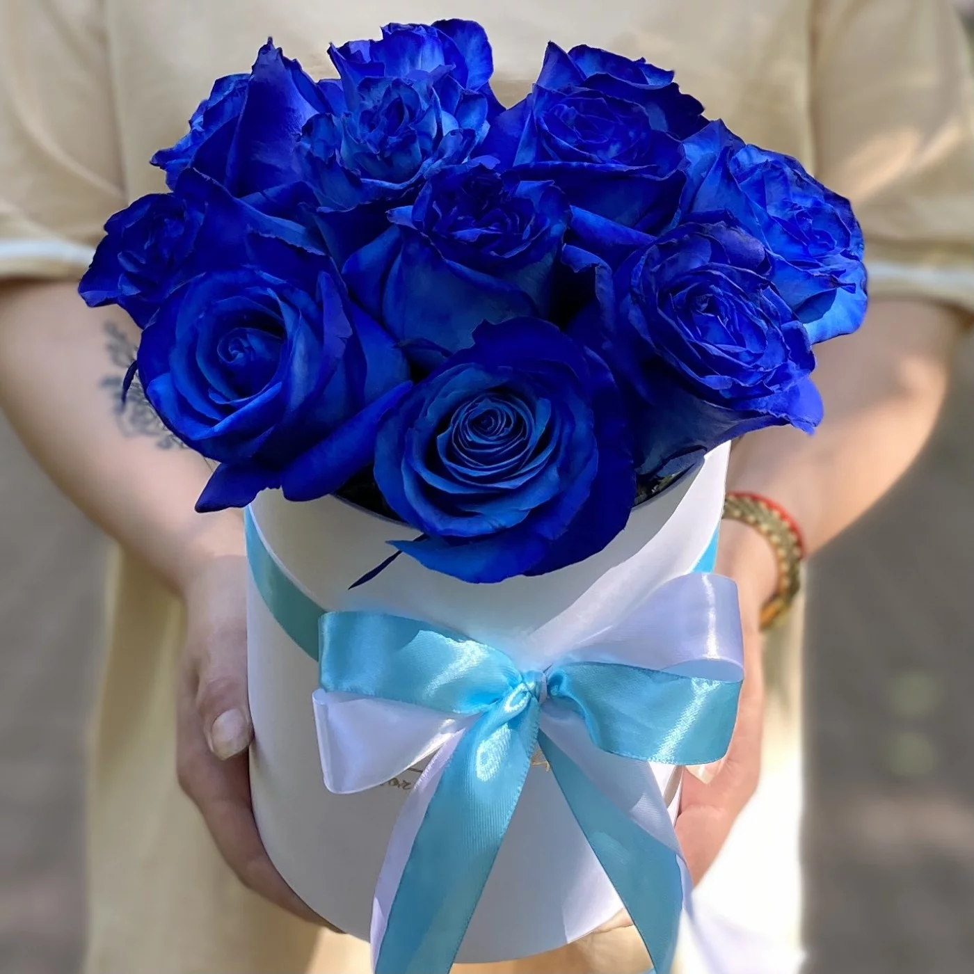 Стильная коробочка из 11 синих роз произведет незабываемое впечатление на Вашу любимую!