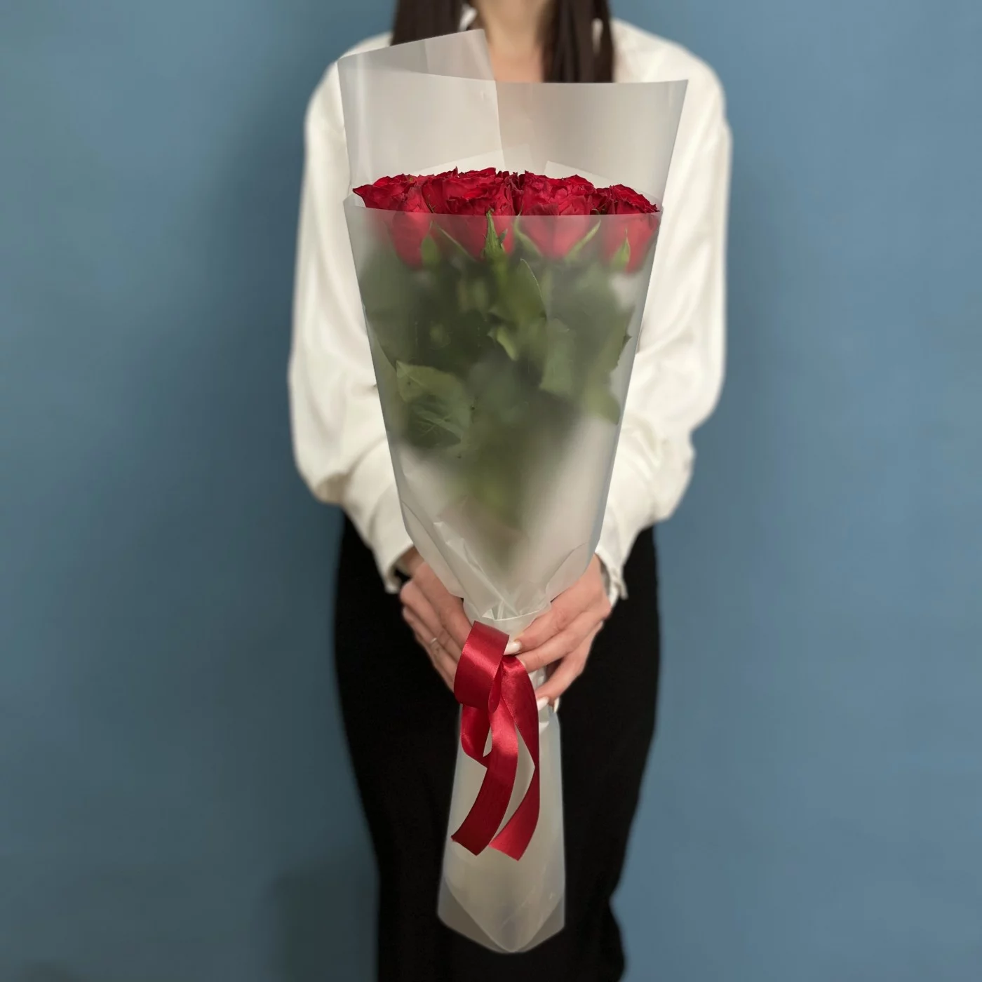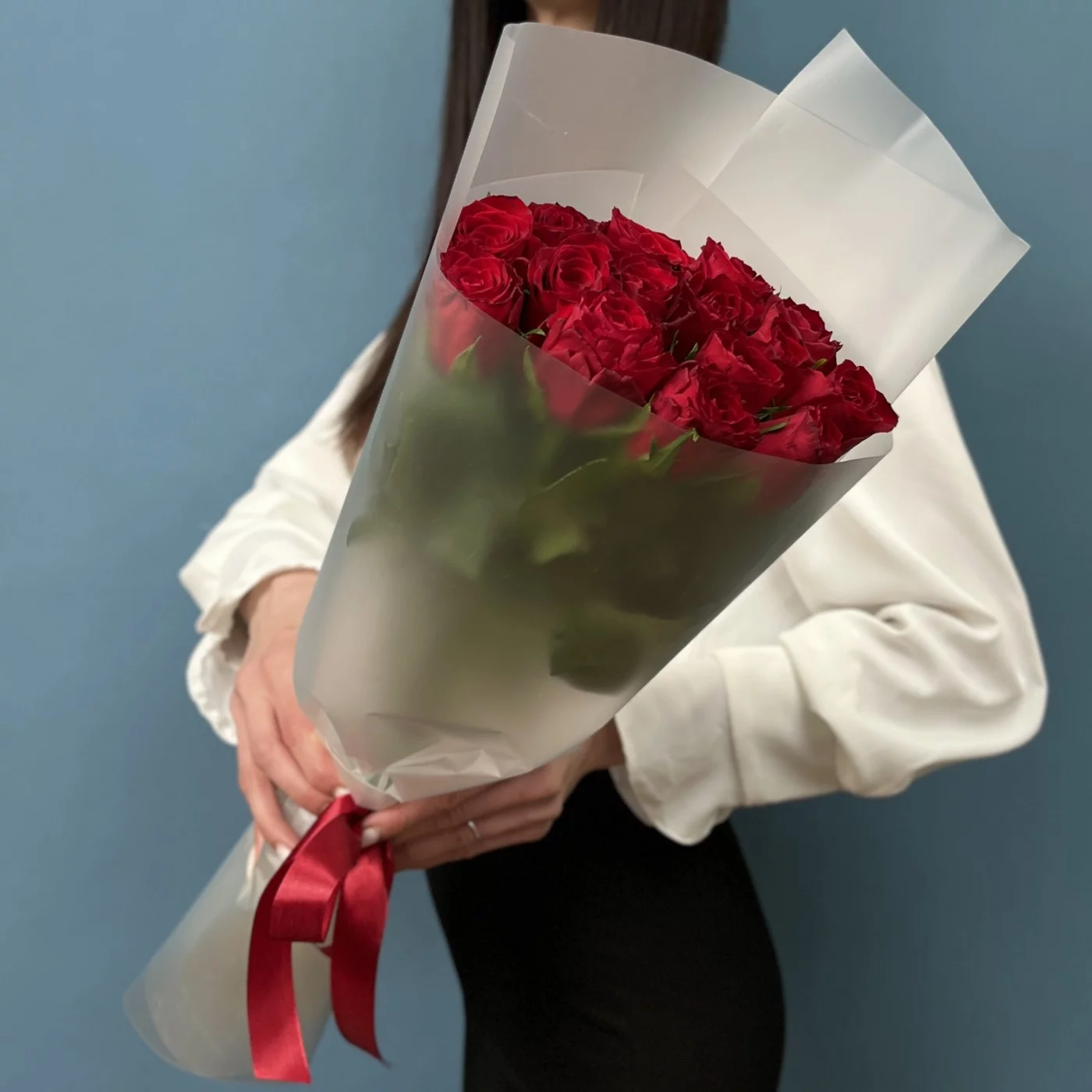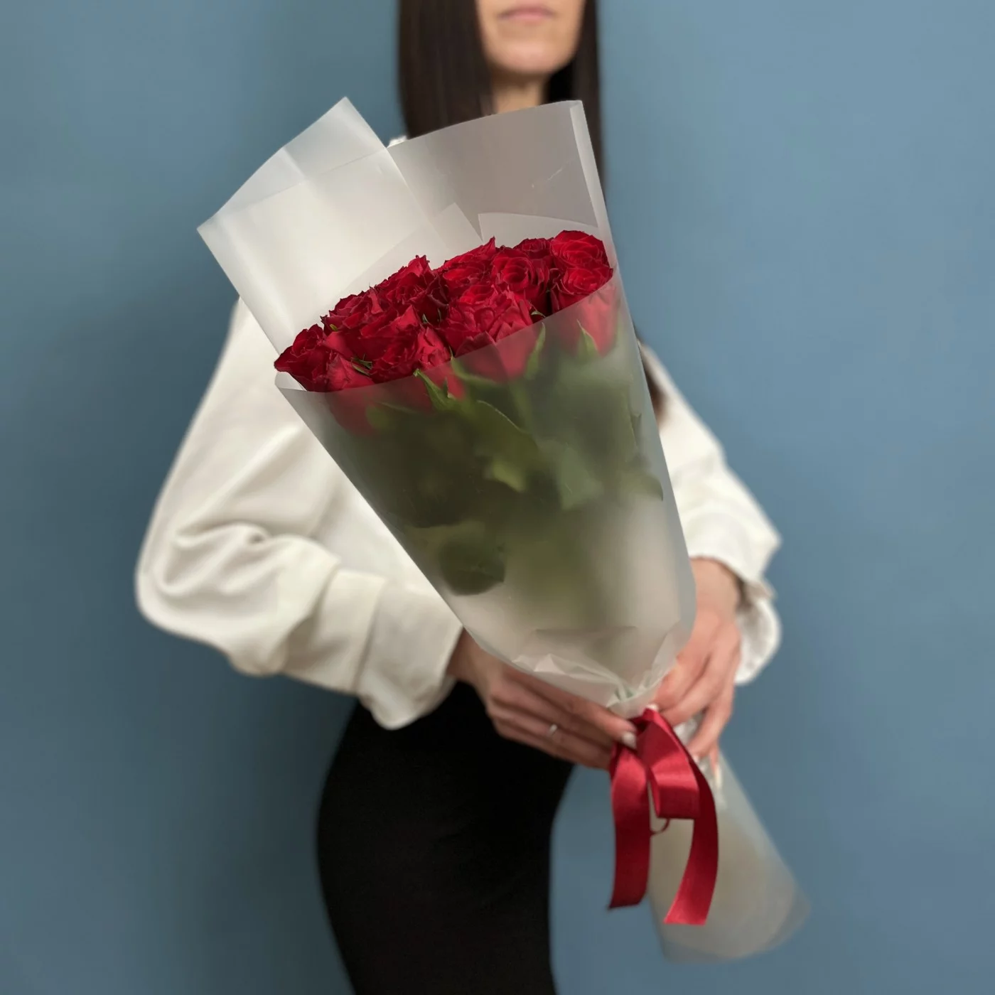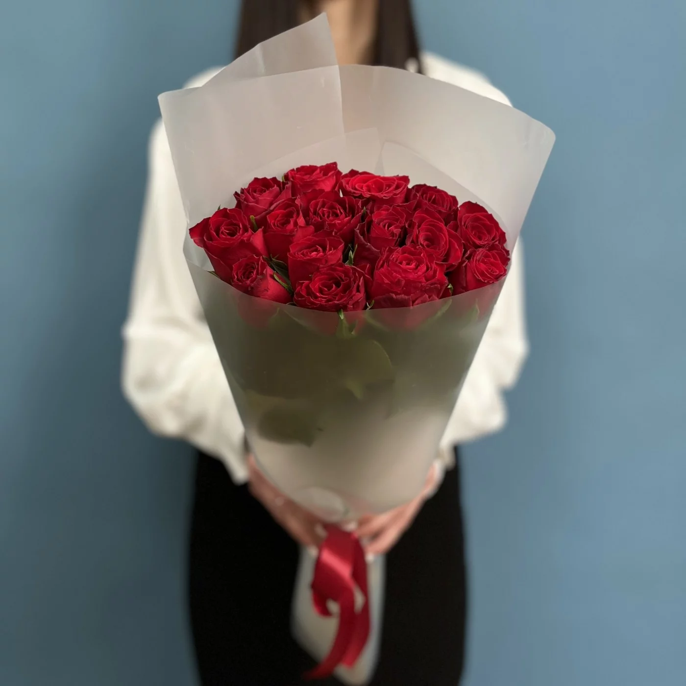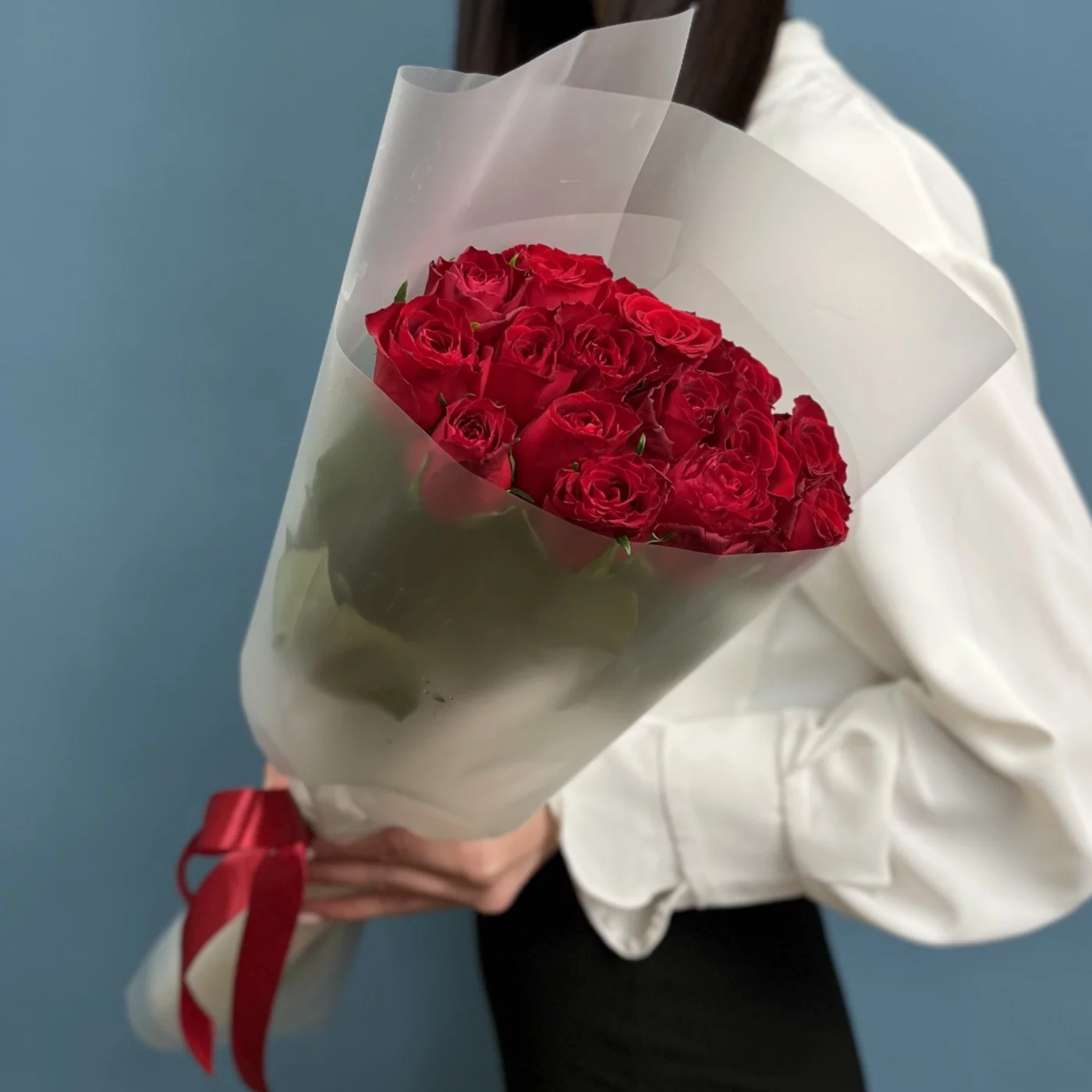 Красные розы традиционно символизируют романтику и восхищение, что делает этот букет идеальным подарком для особых случаев.