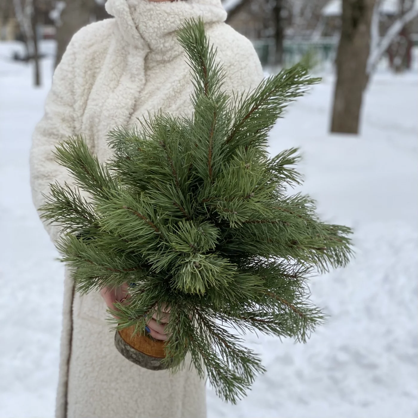 Деревянная композиция ручной работы из сосновых веток. Отлично подойдёт как украшение и неотъемлемый атрибут новогодних праздников.