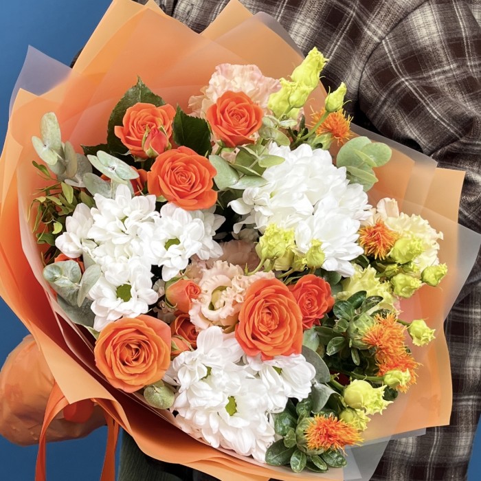 Яркий объемный букет станет прекрасным украшением Вашего праздника. Букет уместно преподнести руководителю, деловому партнеру, коллеге. Порадуйте любимую роскошной композицией, преподнесите цветы маме, бабушке или подруге. Ваши близкие обязательно оценят и надолго запомнят этот восхитительный букет.