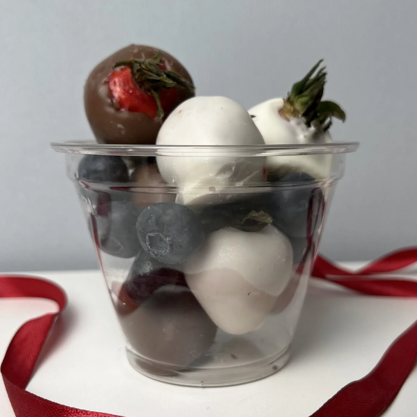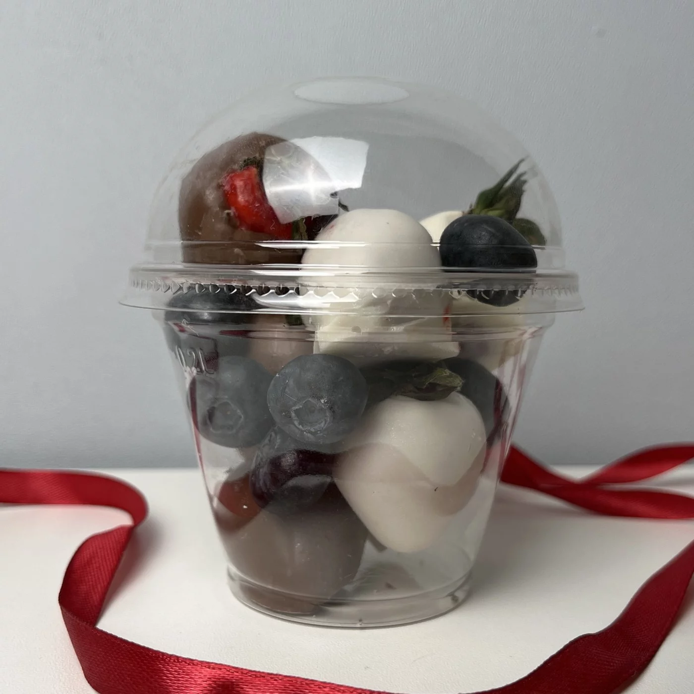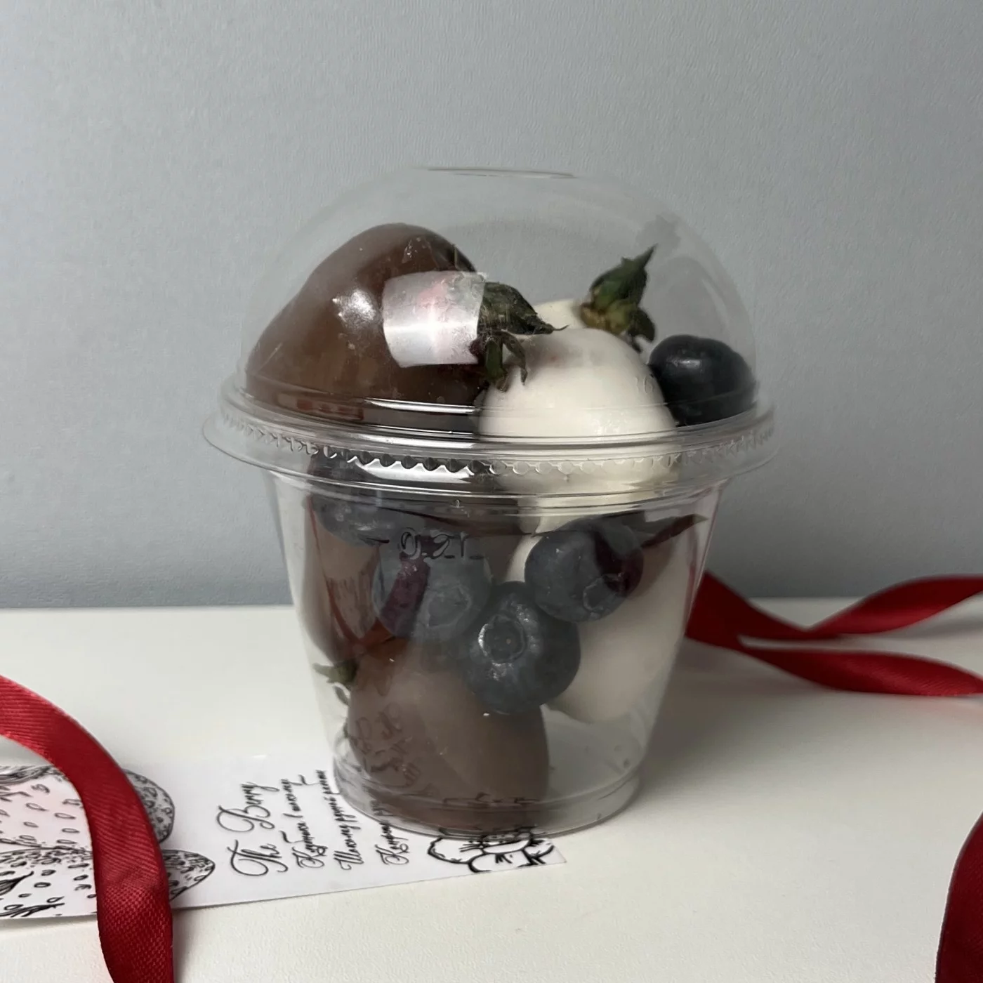 Стаканчик с клубникой в белом и молочном шоколаде с голубикой 200 мл