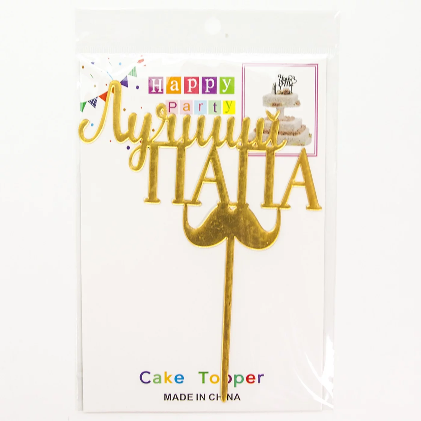 Топпер "Лучший папа с усами", Золотой