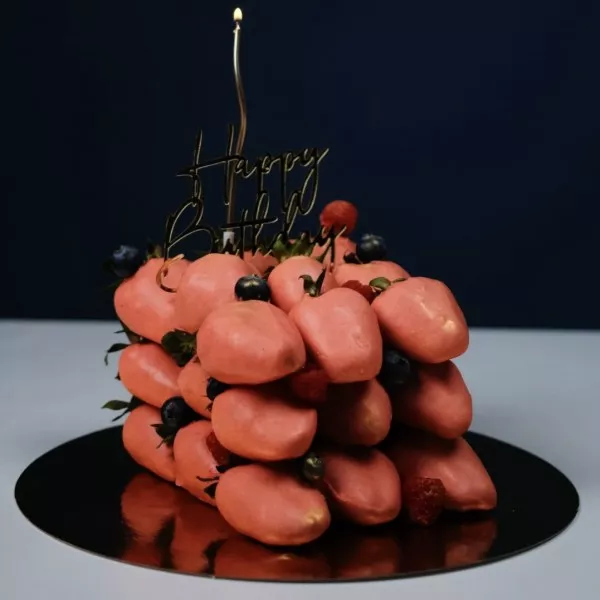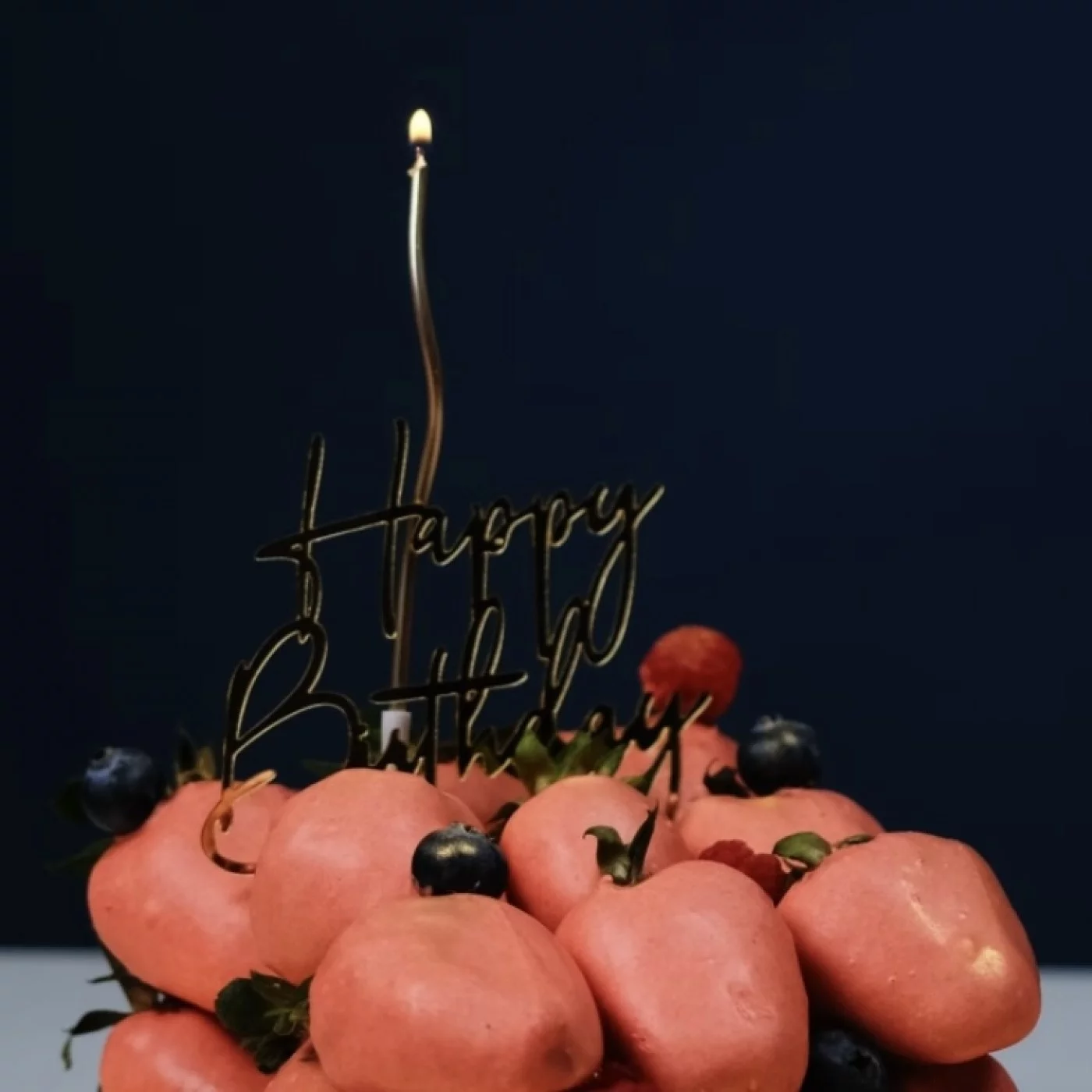 В набор входит: торт из клубники 1,5 кг, малина, голубика, свечка, топпер, коробка для торта.