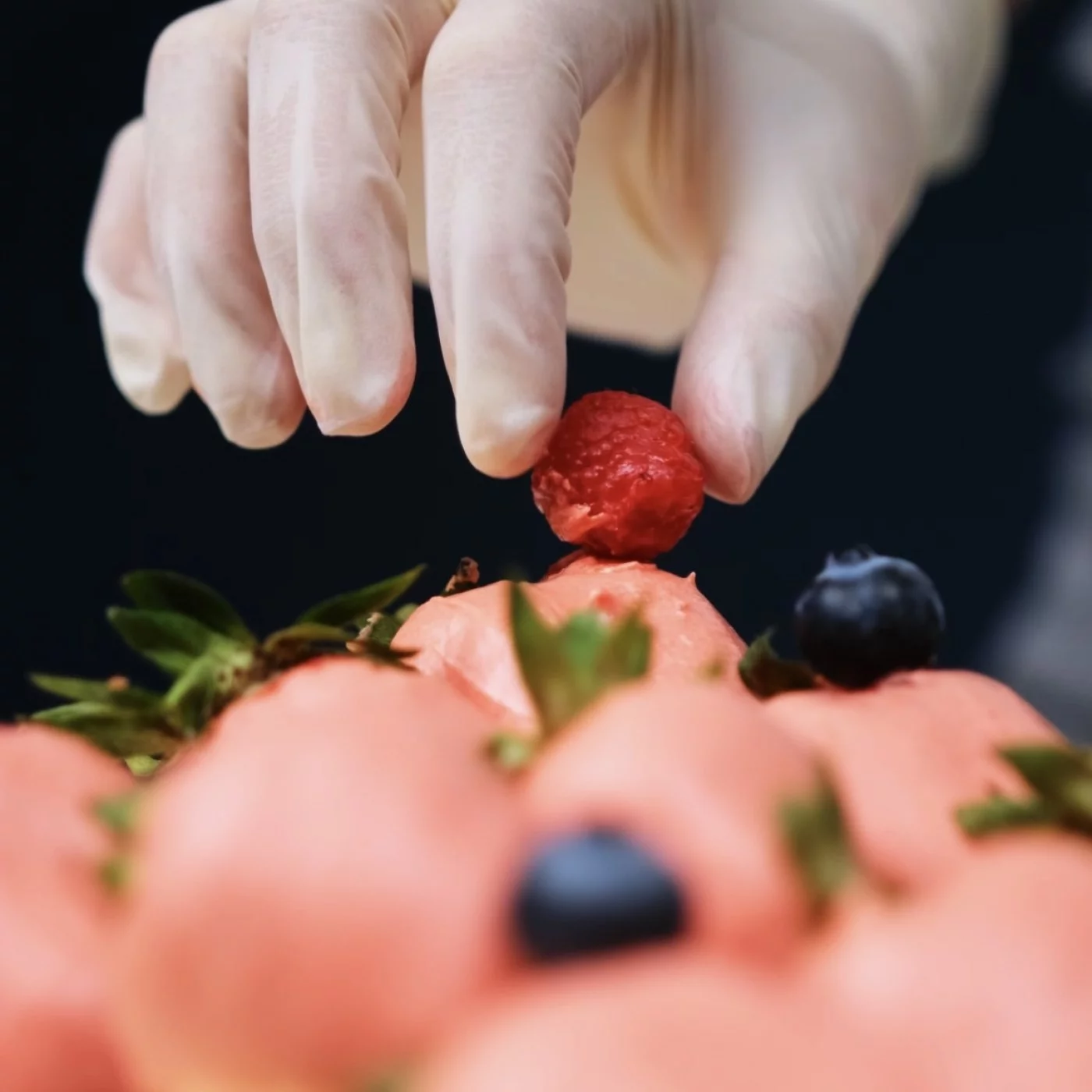 Торт из клубники в шоколаде очень необычный и вкусный подарок. Этот тортик из свежих ягод клубники, малины и голубики в бельгийском шоколаде стал трендом номер один! Хватит дарить бенто тортики как все! Закажите торт из клубники в шоколаде.