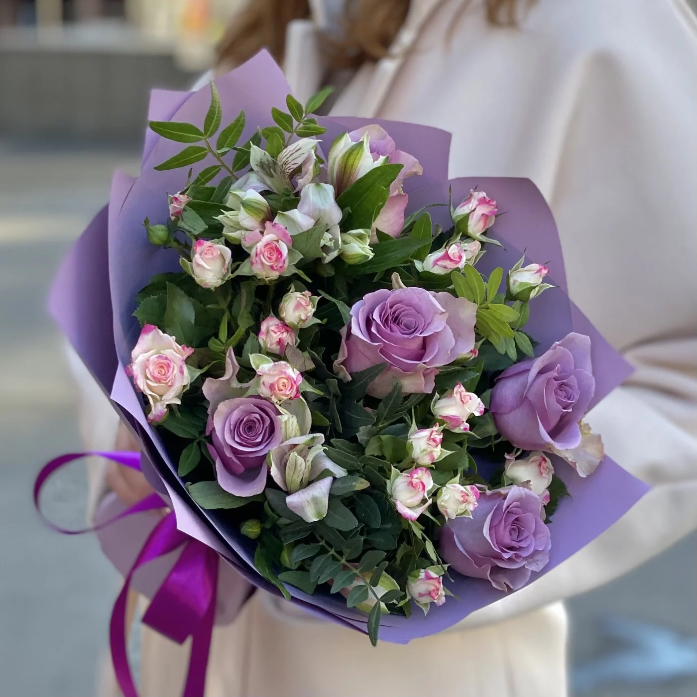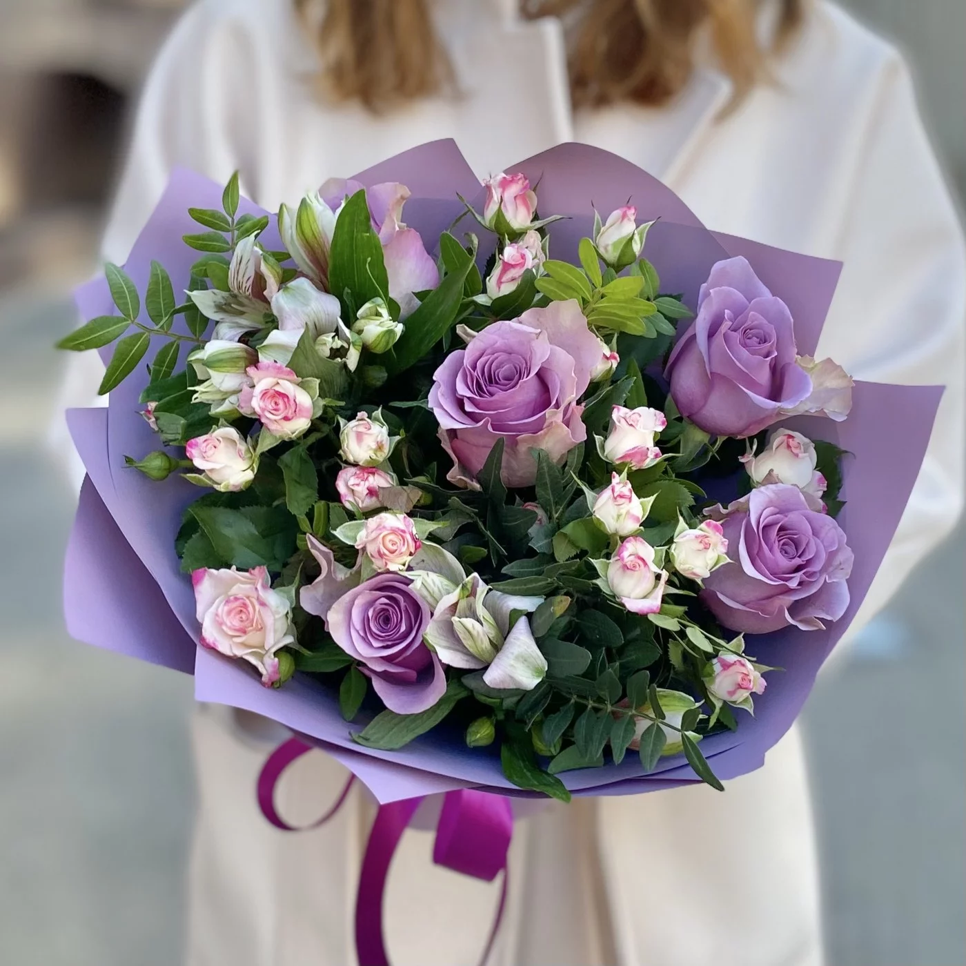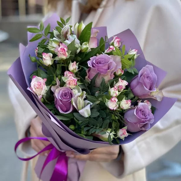 Потрясающий букет в сиреневом цвете - замечательный подарок для самой особенной девушки. Красочный букет станет украшением праздника, предметом восхищённых взглядов и поводом для улыбки. Порадуйте близкого человека удивительным оригинальным букетом, подарите незабываемые эмоции!