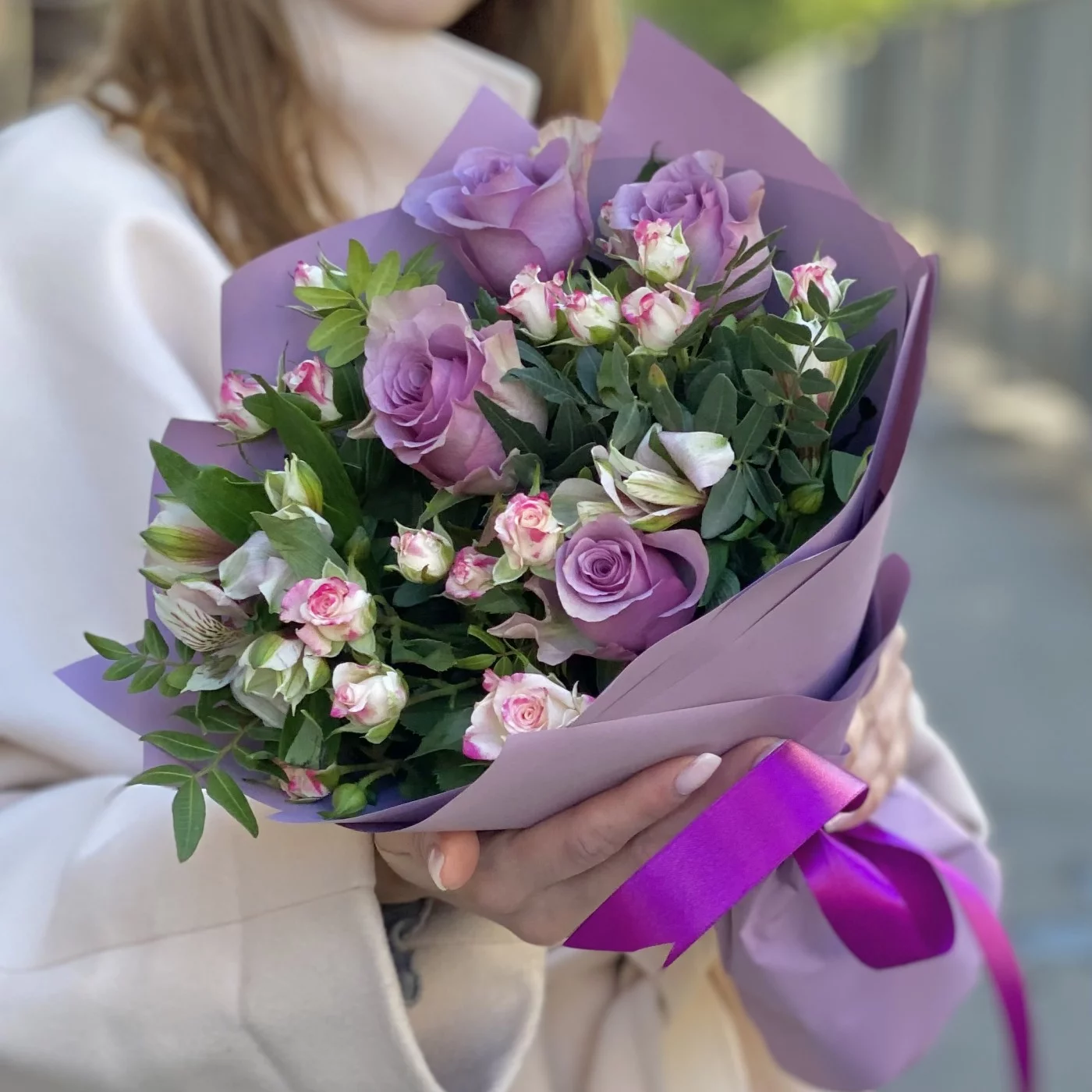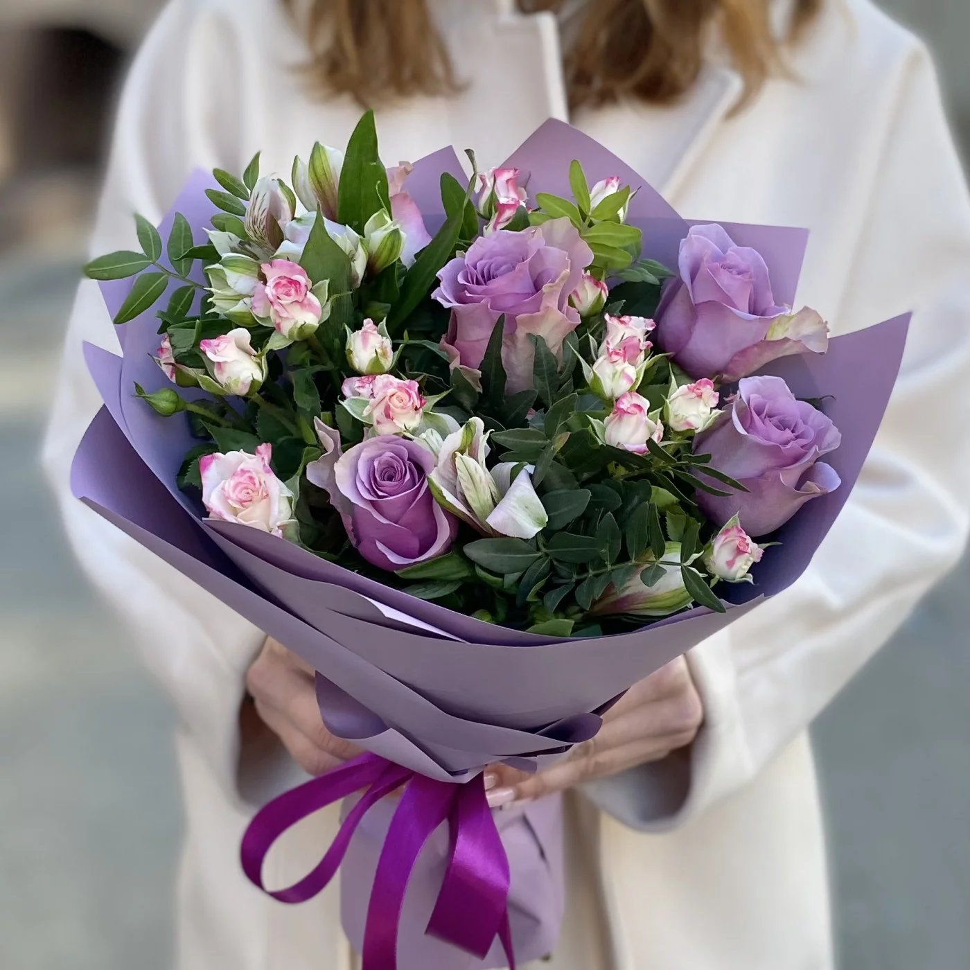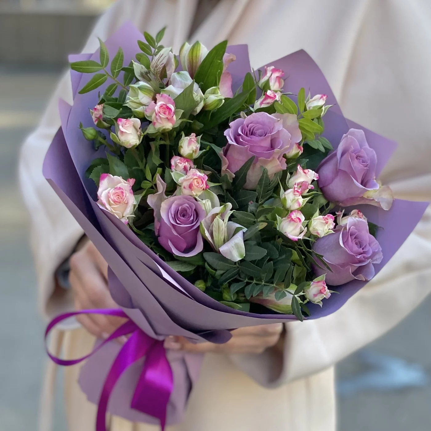 Потрясающий букет в сиреневом цвете - замечательный подарок для самой особенной девушки. Красочный букет станет украшением праздника, предметом восхищённых взглядов и поводом для улыбки. Порадуйте близкого человека удивительным оригинальным букетом, подарите незабываемые эмоции!