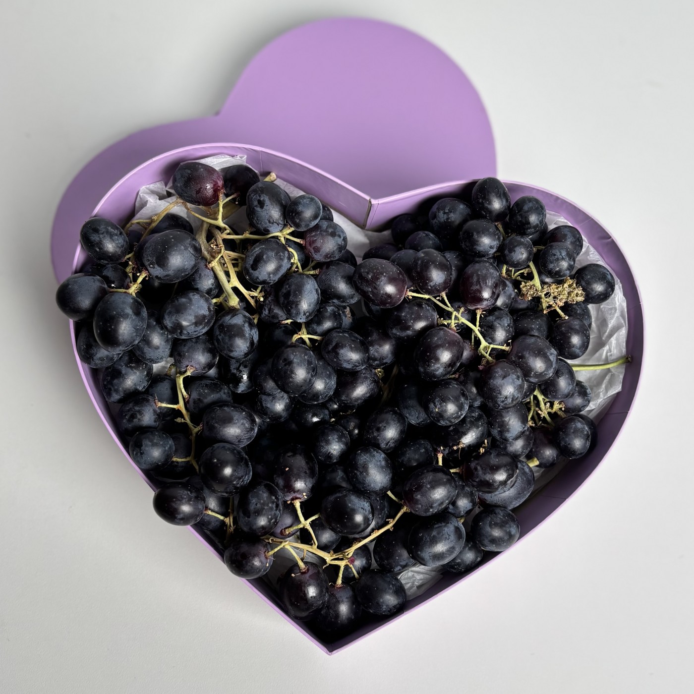 125грКоробка сердце с черным виноградом.