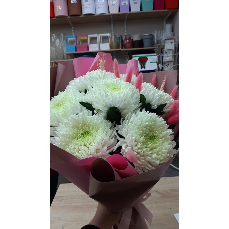 Спасибо за красивый букет! Цветы свежие, доставка точно в указанный временной интервал! Очень понравилось то, что букет упаковали на совесть, чтобы цветы не замёрзли! Заказывала букет с сиреневыми хризантемами, перезвонила консультант, сказала, что сиреневые хризантемы не первой свежести и предложила сделать такой же букет, но с белыми хризантемами , получилось тоже ооочень красиво! ????
