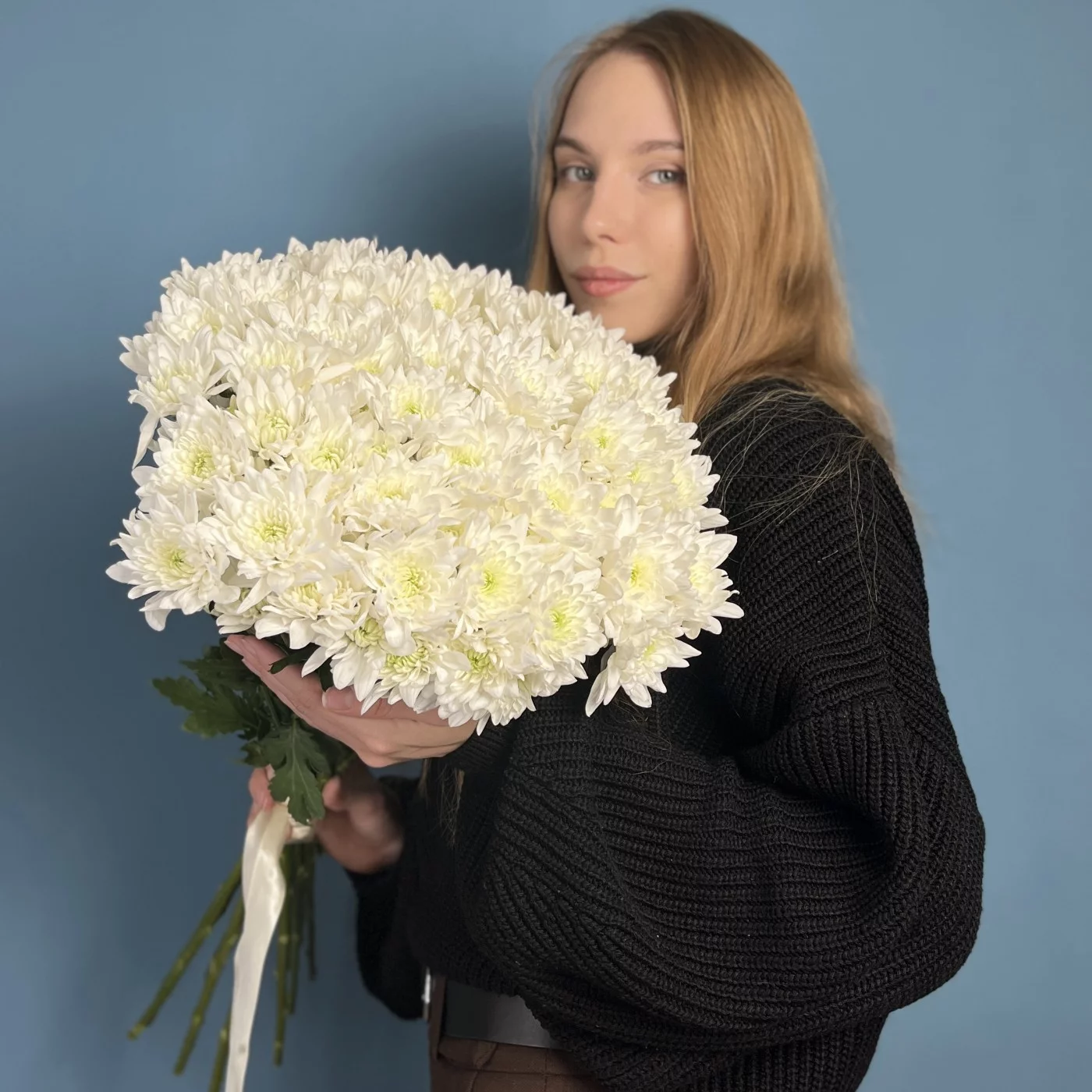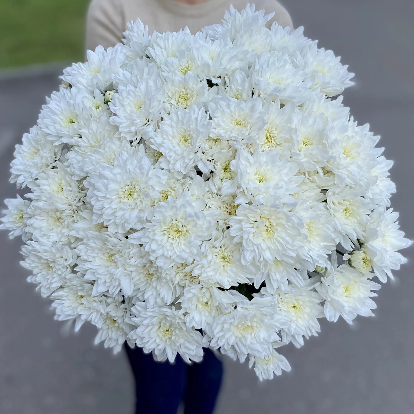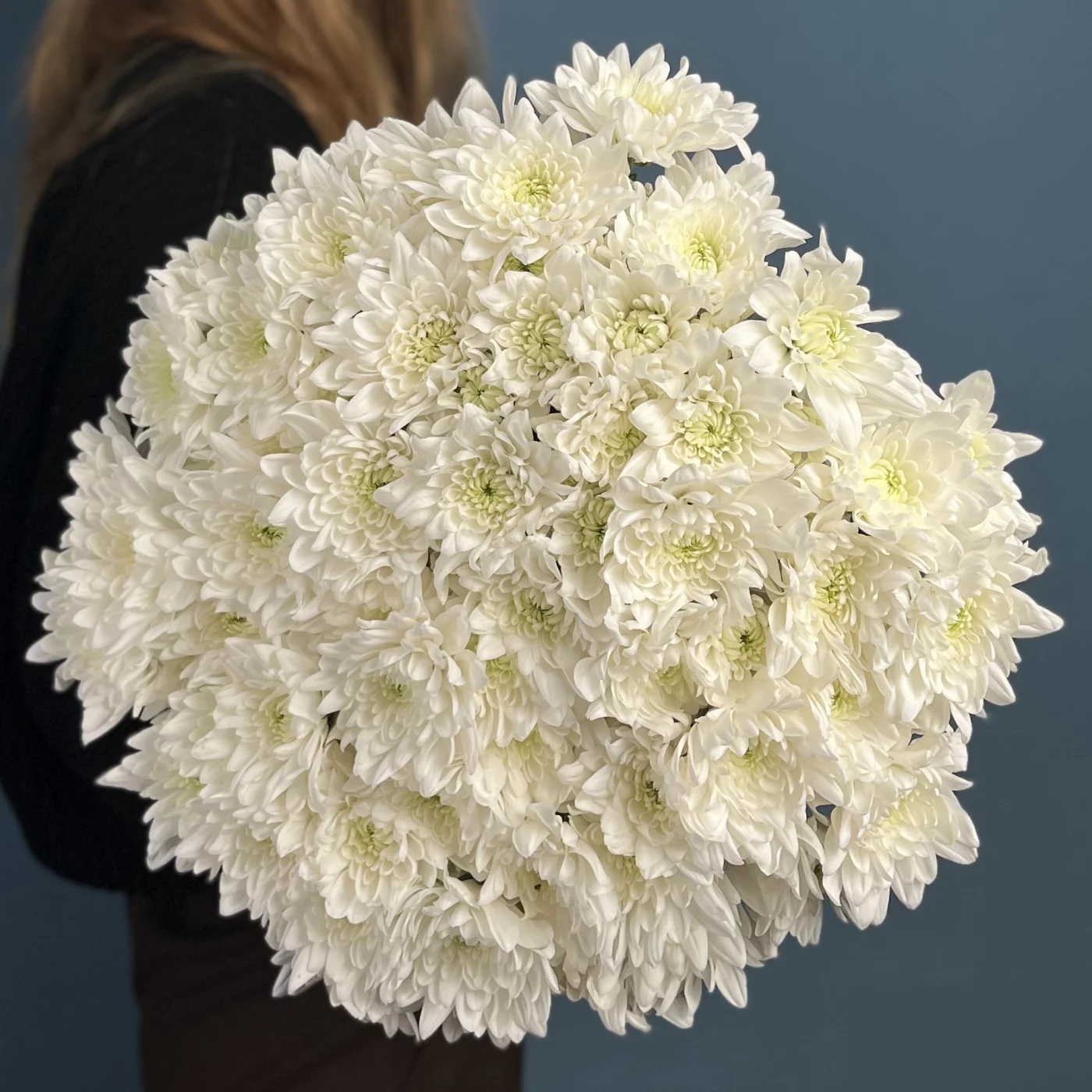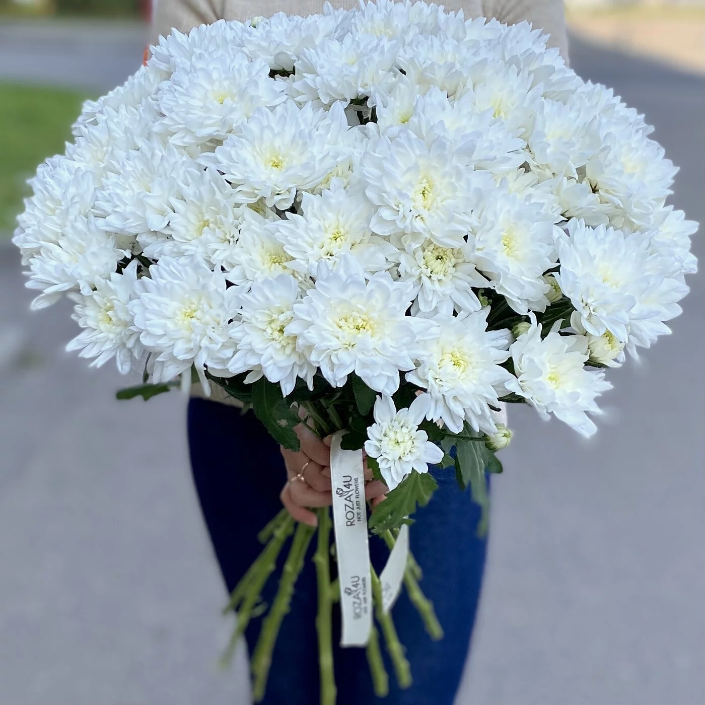 Белые кустовые хризантемы (пышные) поштучно – можно купить недорого в нащем интернет магазине, с доставкой по Москве и Московской области.