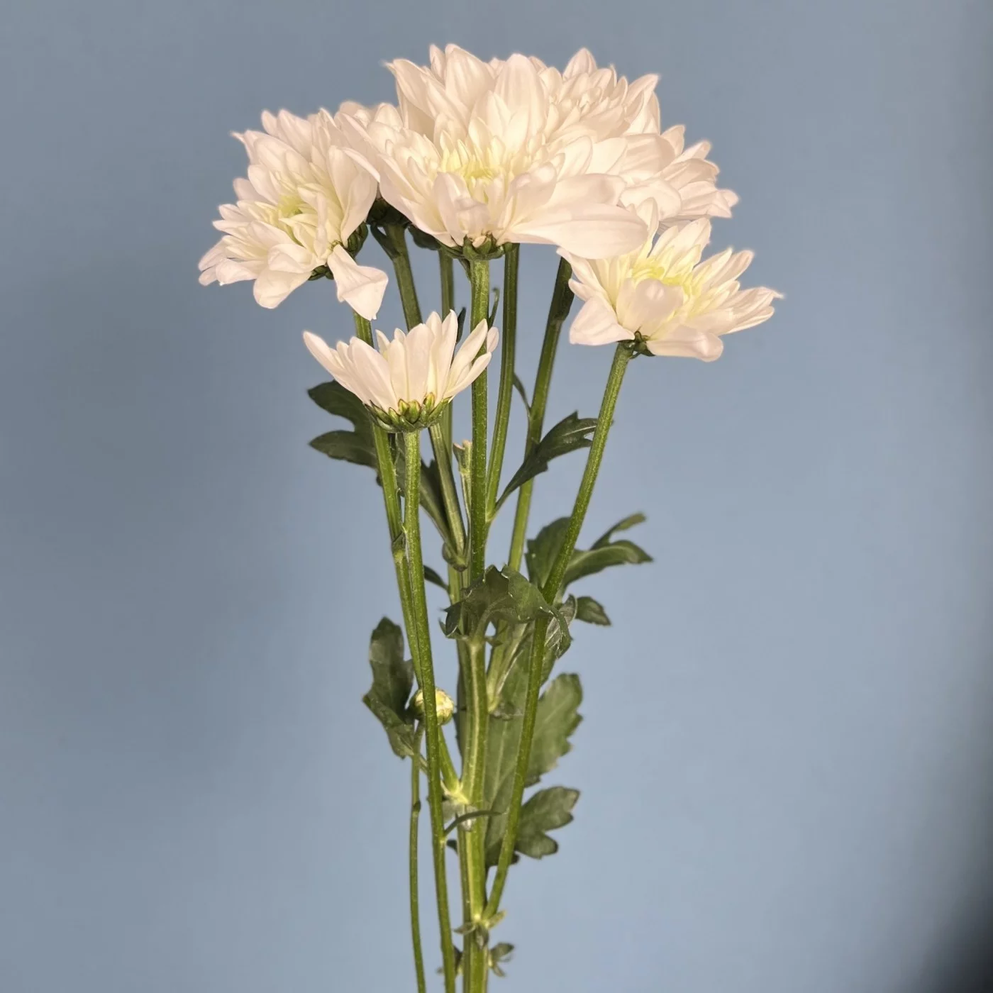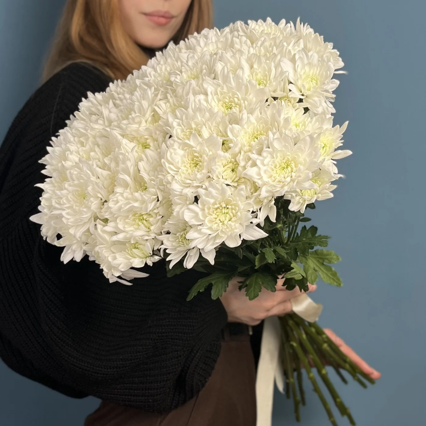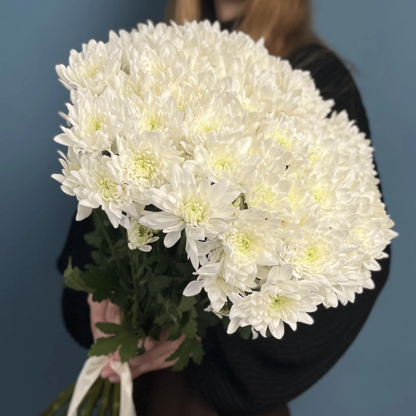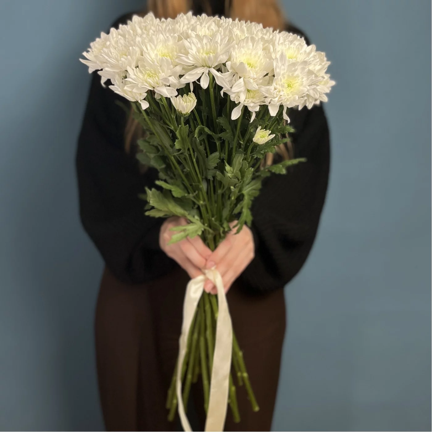 Белые кустовые хризантемы (пышные) поштучно – можно купить недорого в нащем интернет магазине, с доставкой по Москве и Московской области.