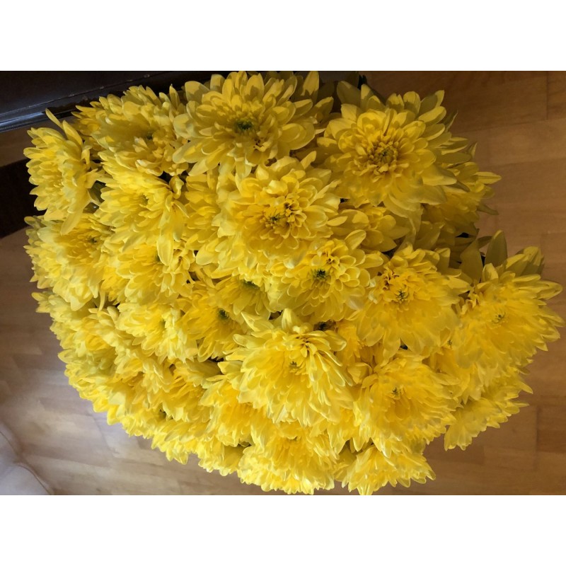 Желтые кустовые хризантемы (пышные) поштучно – можно купить недорого в нащем интернет магазине, с доставкой по Москве и Московской области.