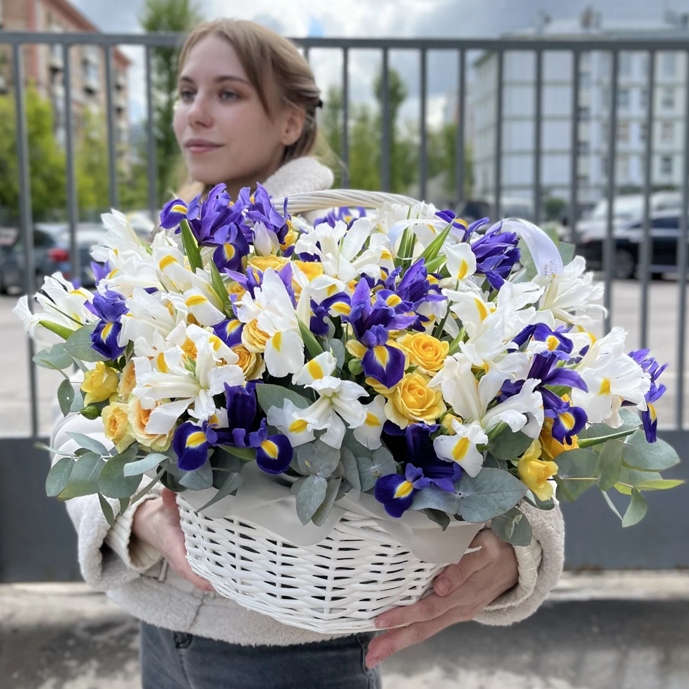 Эта яркая корзина — настоящее воплощение весенней свежести и красоты.