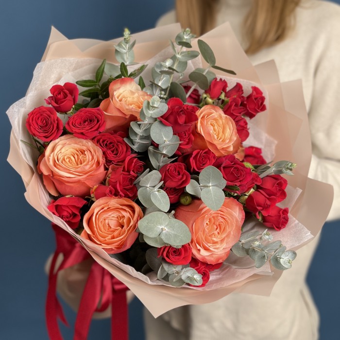 Яркий букет с розами Праздник счастья