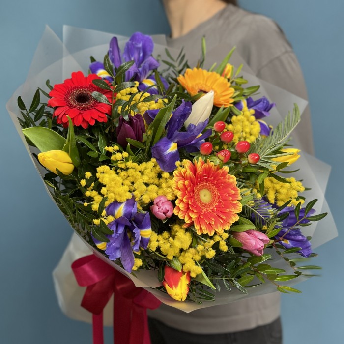 Яркий весенний букет на 8 марта — это символ весны, красоты и гармонии. Он оставит незабываемые впечатления и станет прекрасным дополнением к любому празднику.