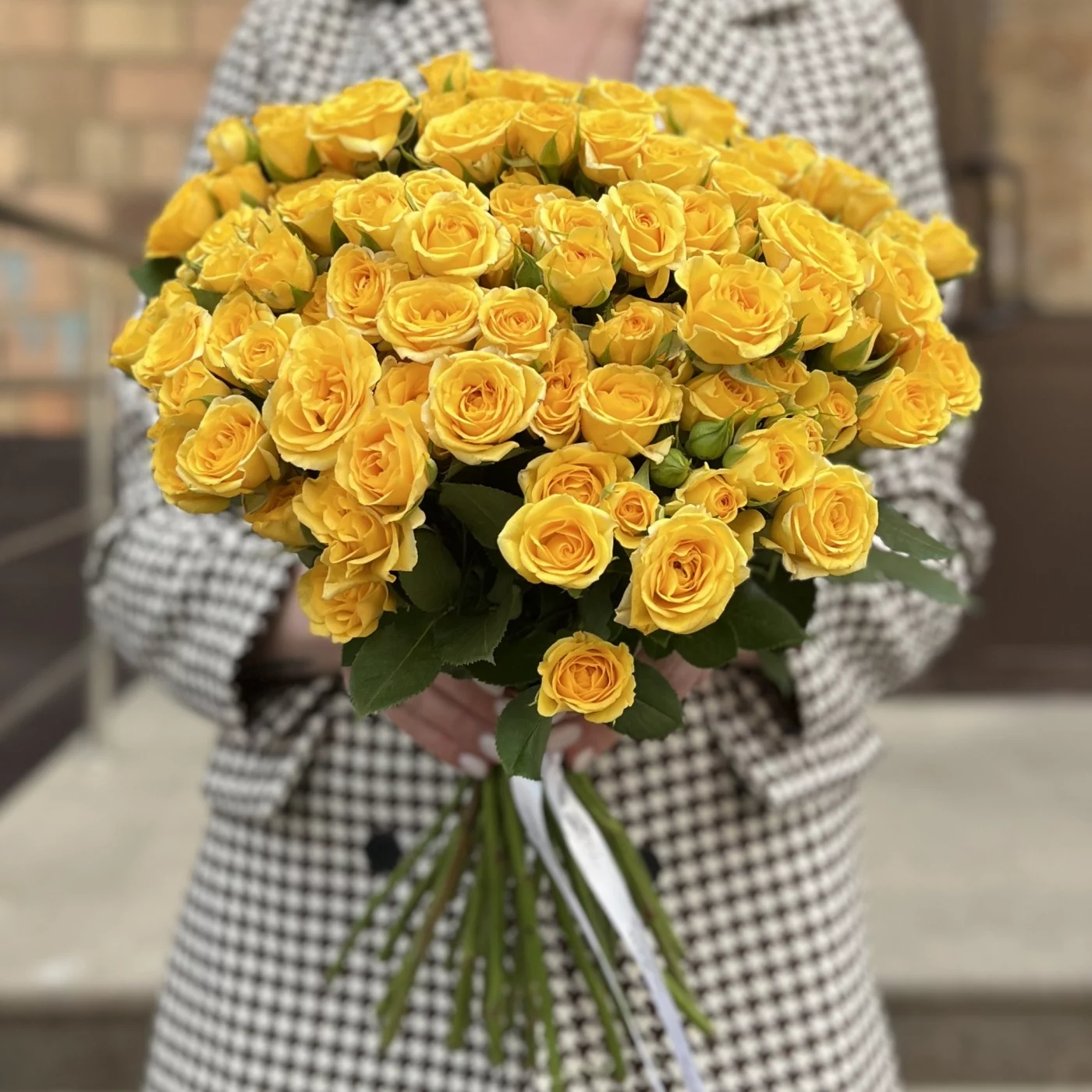 Желтая кустовая Роза Еллоу бейби 40 см