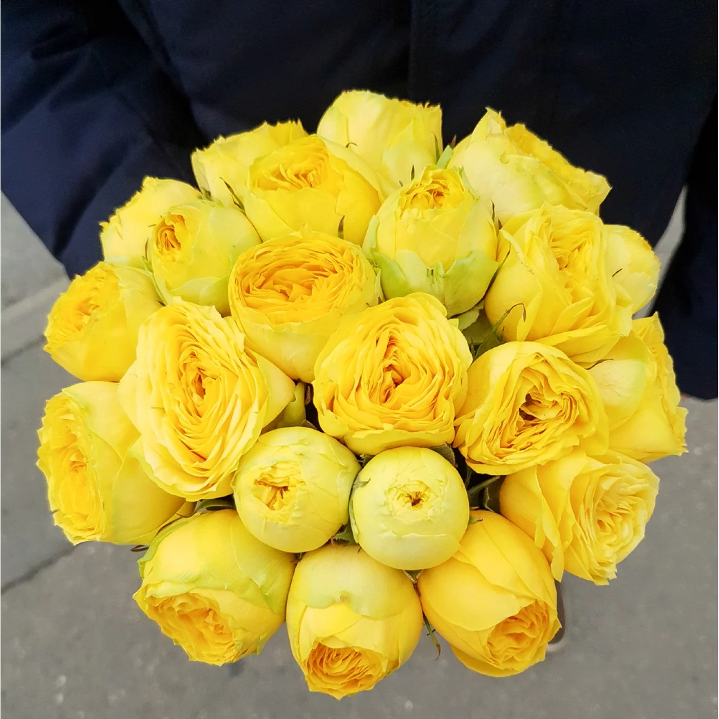 Пионовидные жёлтые розы, пожалуй, один из самых изящных способов сделать пасмурный день светлее, а настроение - значительно лучше!