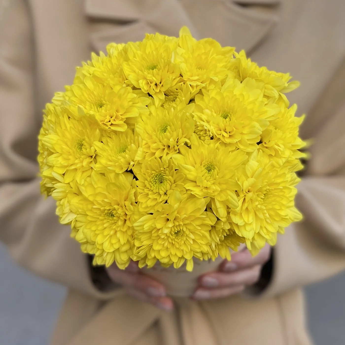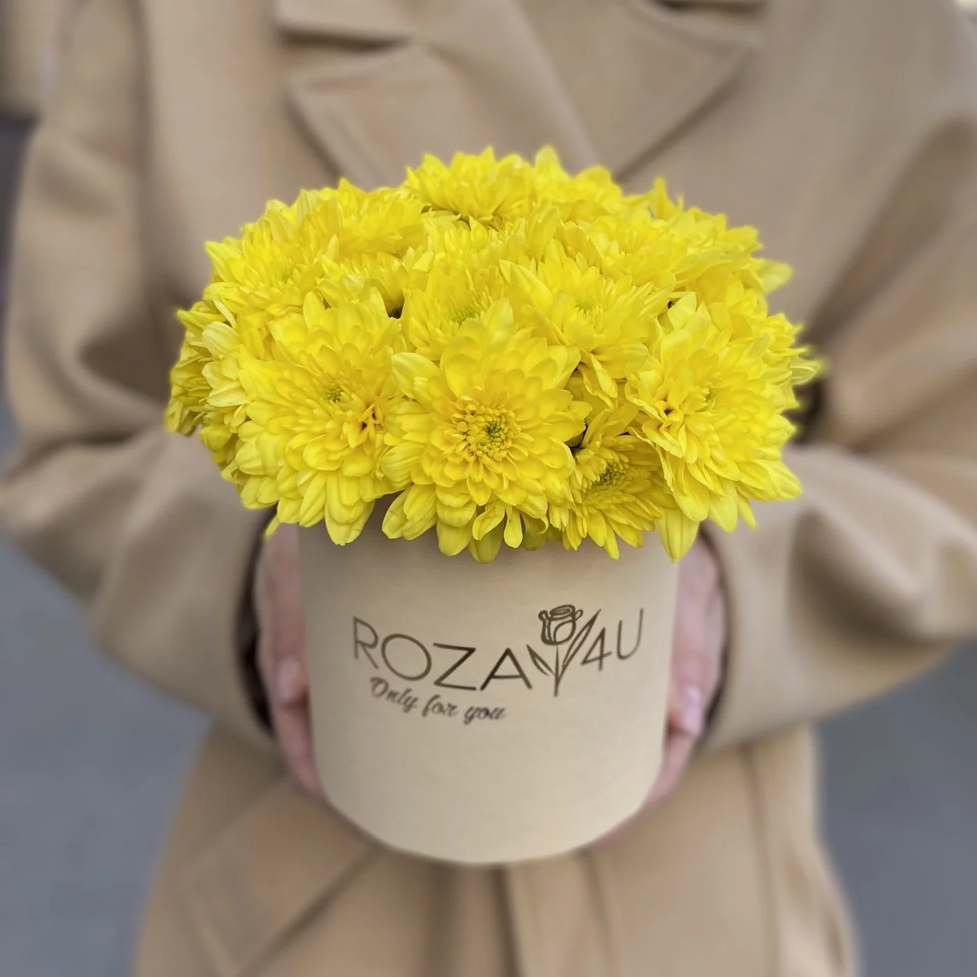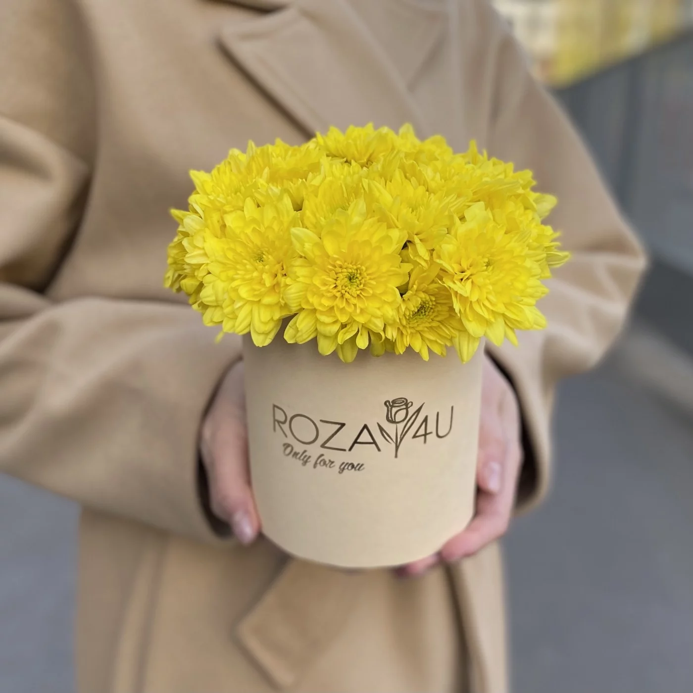 Очаровательная композиция из хризантем в шляпной коробке - отличный комплимент для близкого человека. Свежие ароматные цветы станут приятным сюрпризом и подарят прекрасное настроение. Благодаря низкой стоимости, композиция пользуется особой популярностью у наших клиентов. Хризантемы в шляпной коробке - универсальный подарок, очаровательной композиции будет рада любая девушка.