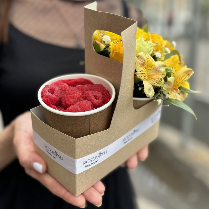 Желтый букет комплимент с малиной MIX
