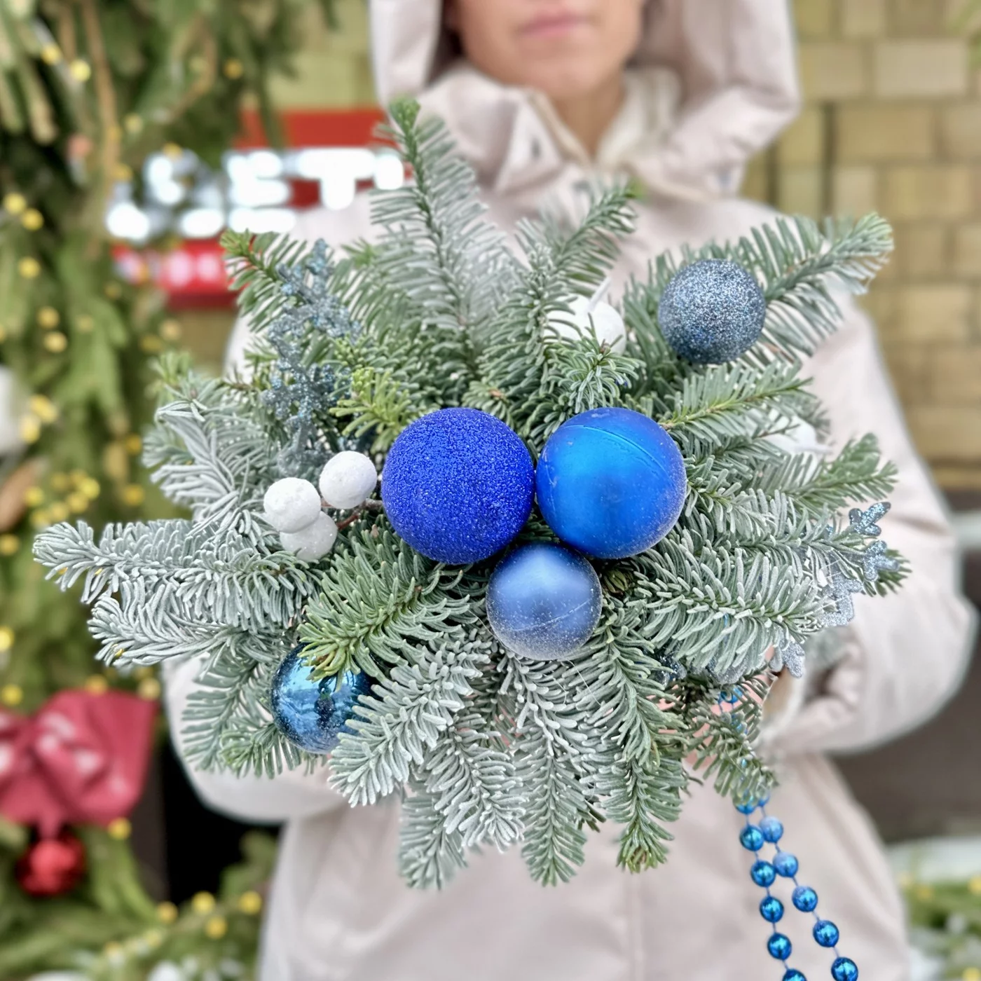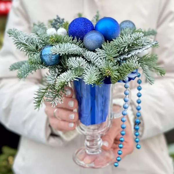 Зимняя настольная композиция синего цвета — это элегантное и стильное решение для создания уютной атмосферы в вашем доме в холодное время года. Синяя палитра ассоциируется с зимними пейзажами и спокойствием, что делает такую композицию идеальной для праздничных мероприятий или просто для украшения интерьера.