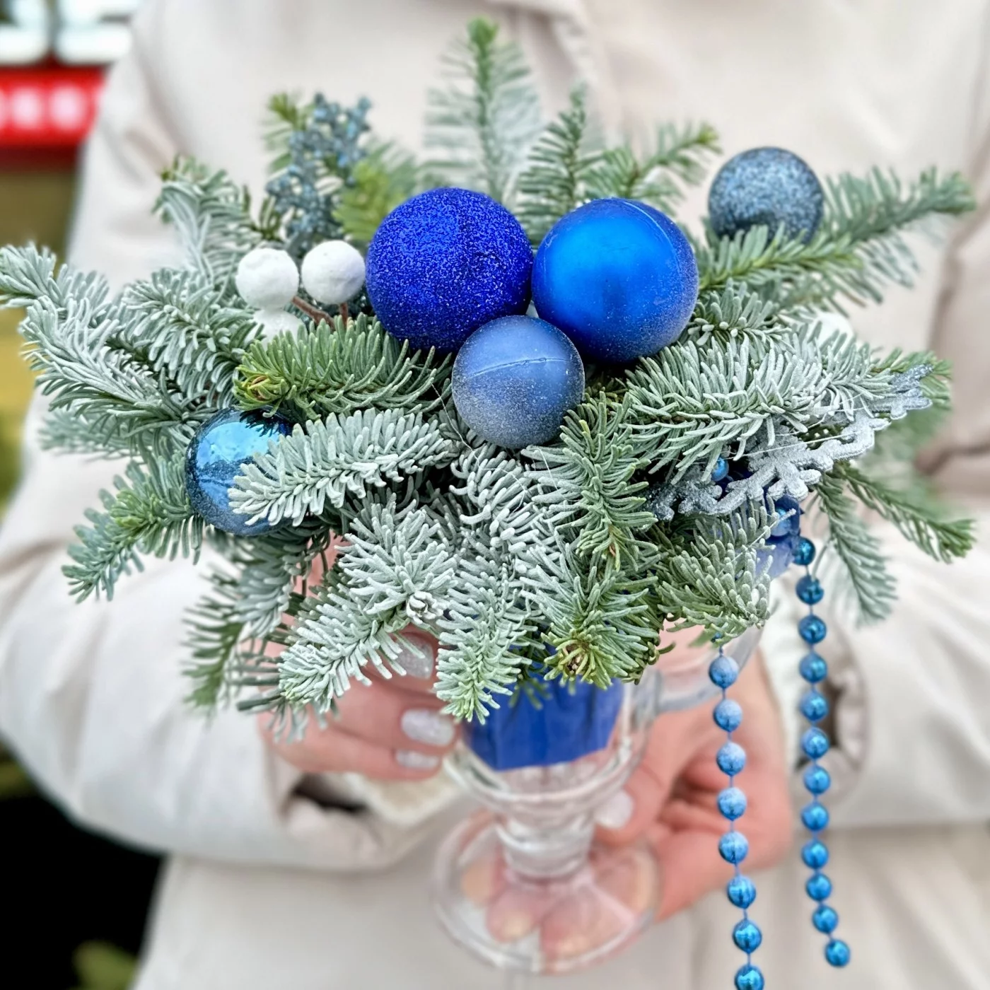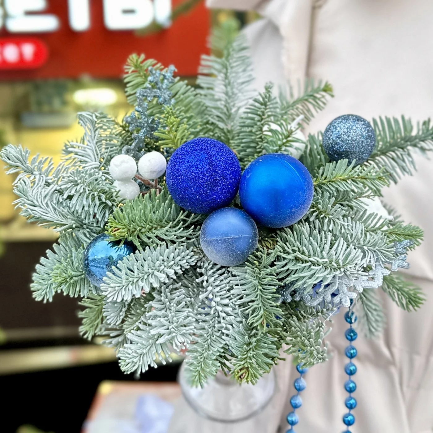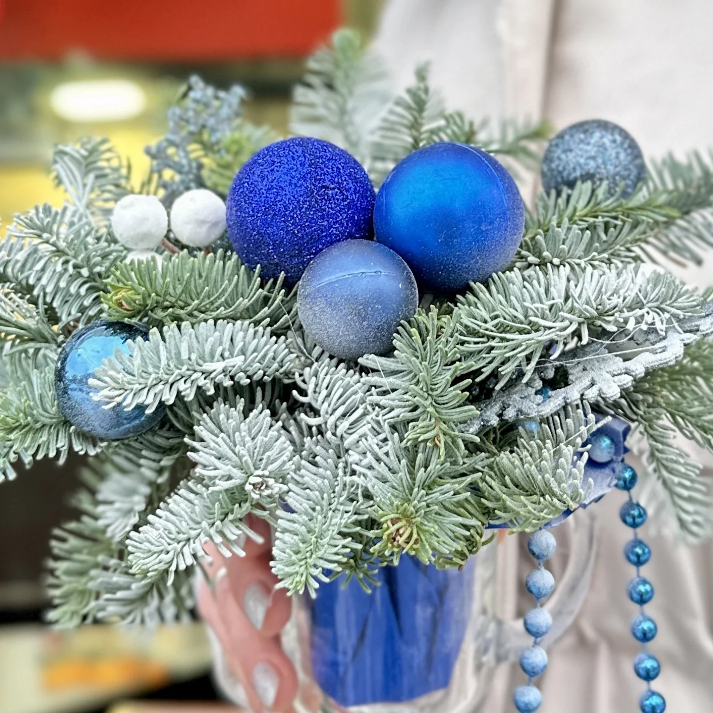 Зимняя настольная композиция синего цвета