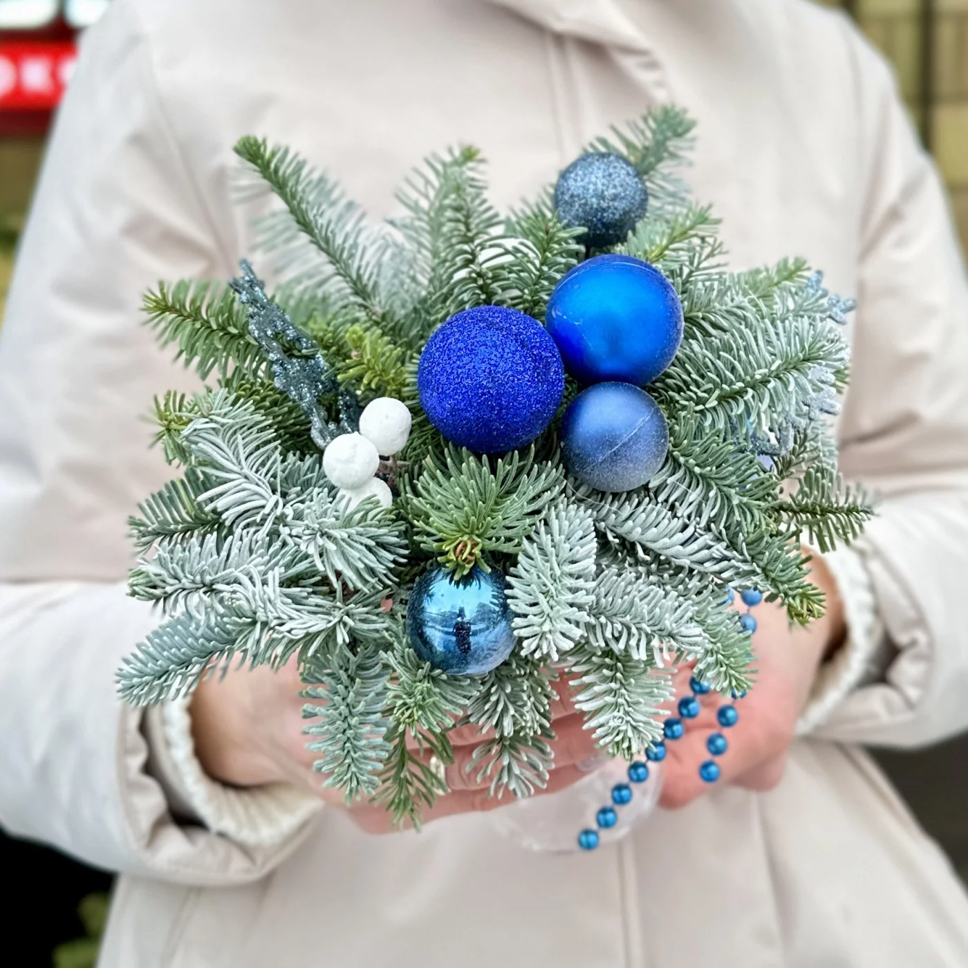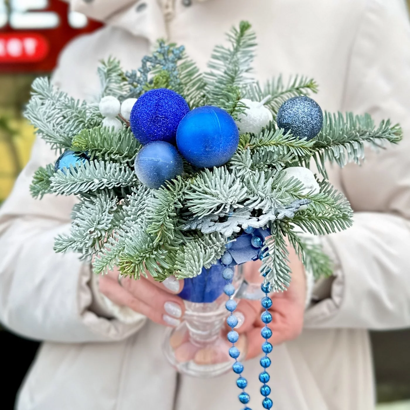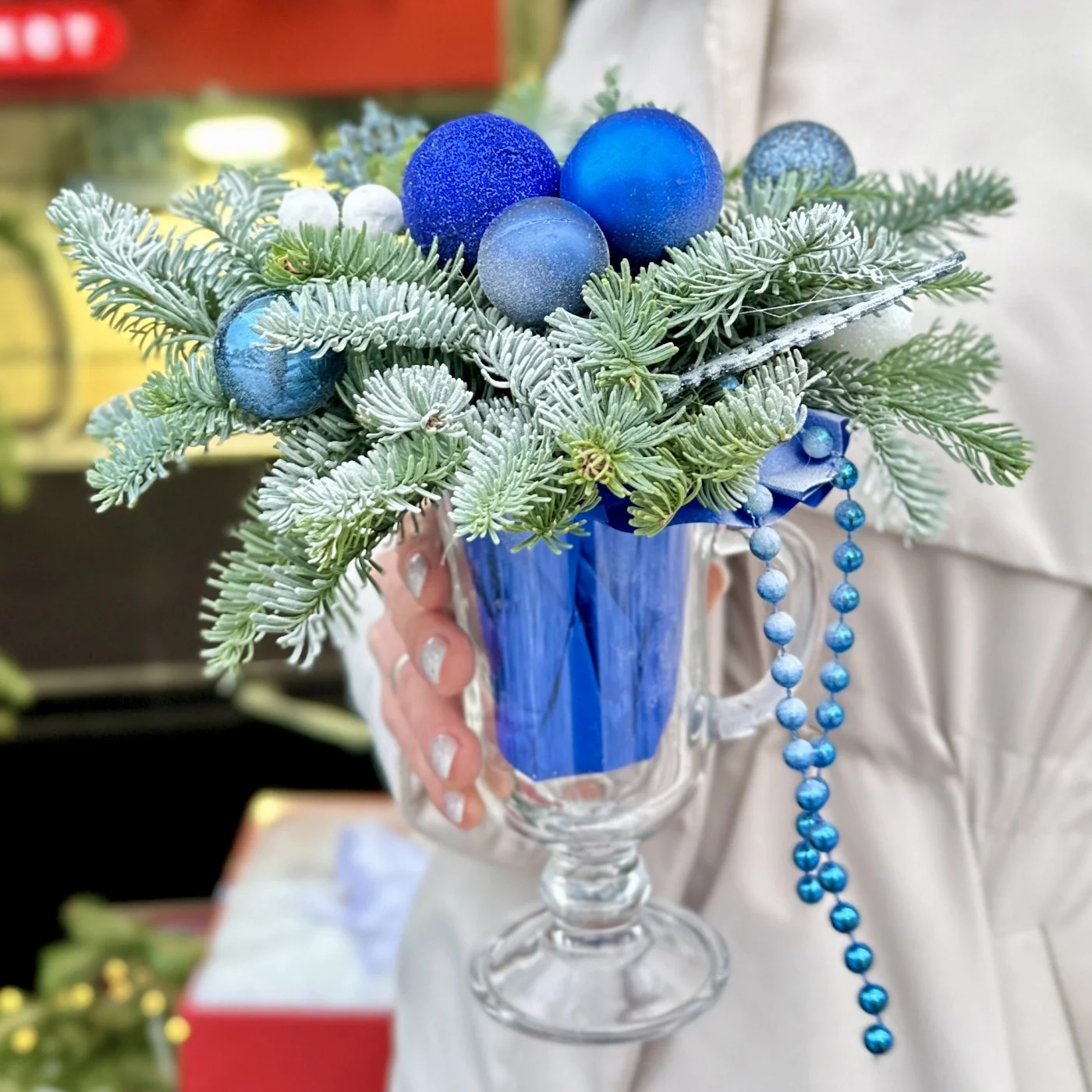 Зимняя настольная композиция синего цвета